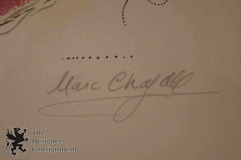 Created in 1957, this color lithograph is hand-signed by Marc Chagall (Vitebsk, 1887 – Saint-Paul, 1985) in pencil in the lower right and is numbered from the edition of 90 in pencil in the lower left.