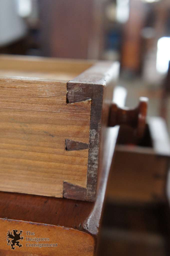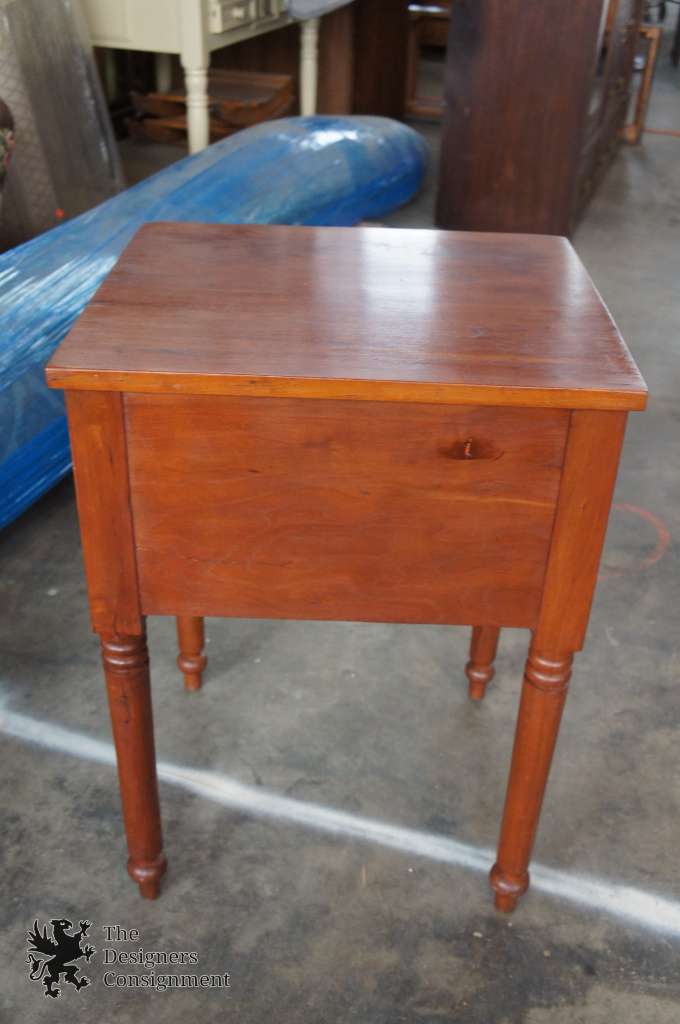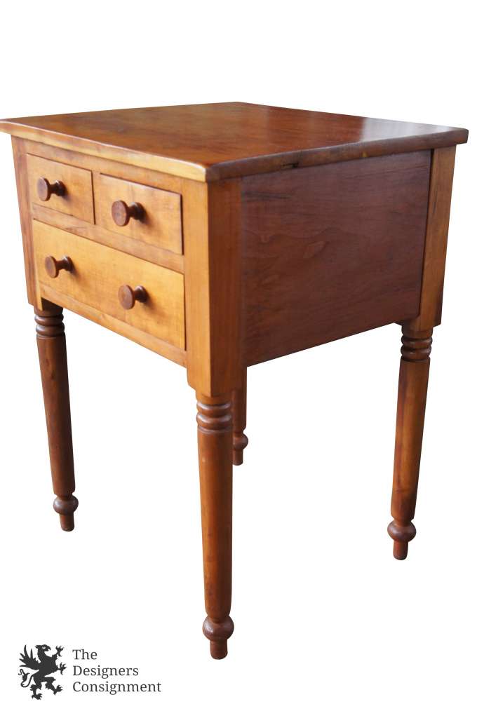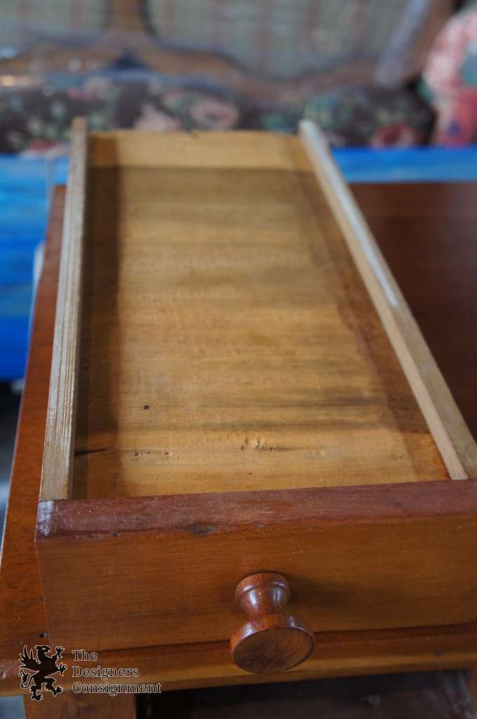 Primitive/ Early American Style Walnut Accent Table. Features 3 hand dovetailed and planed drawers. Smooth wooden knobs and turned legs.
