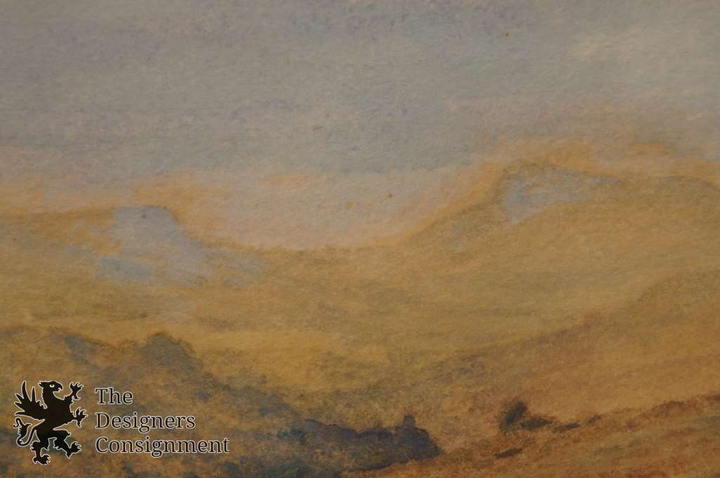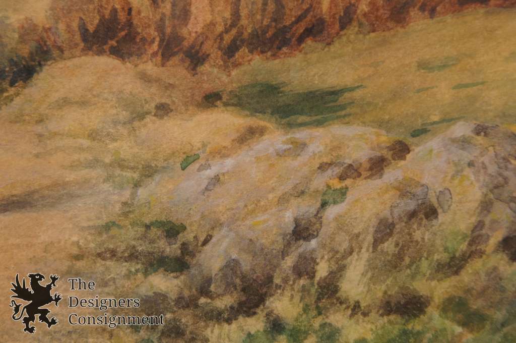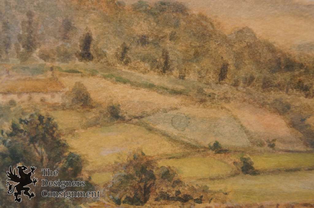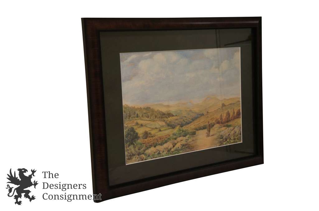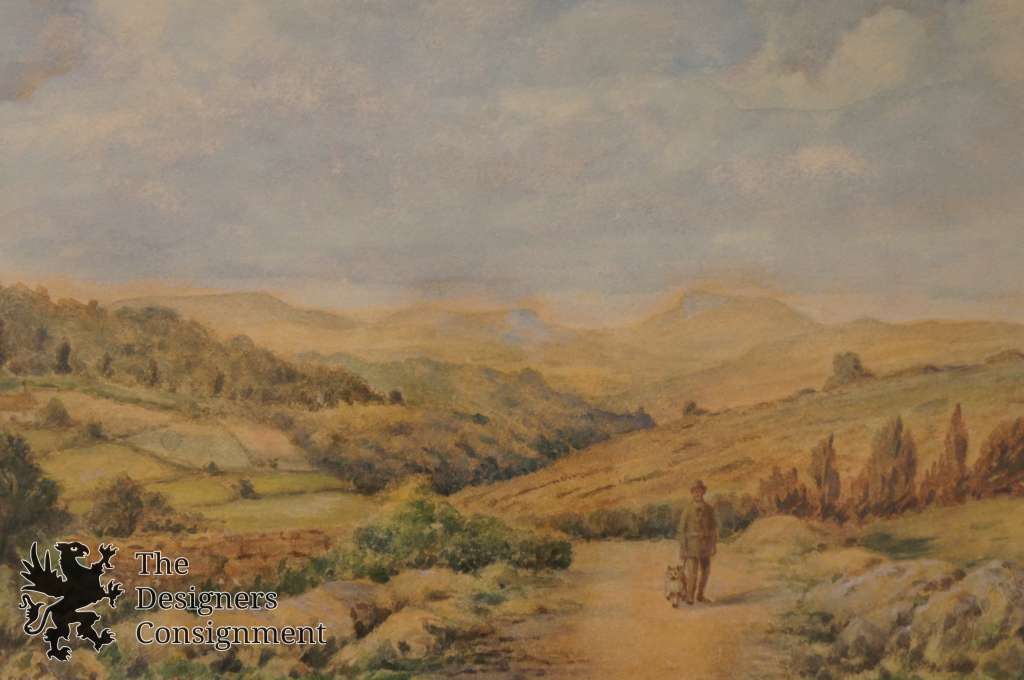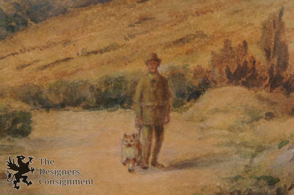 A rural setting painting with a man and his dog along the tail. Framed, matted and covered with glass. Signed lower left.