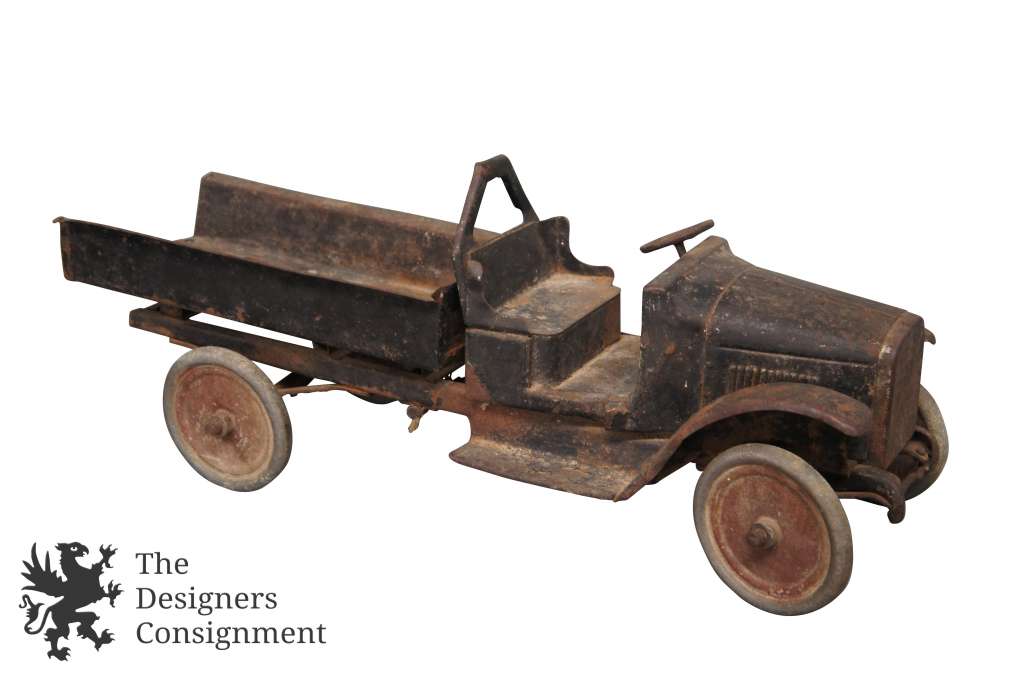 24" Antique Early 1900s Tin Dump Truck Toy Functional Metal Vehicle Children Car