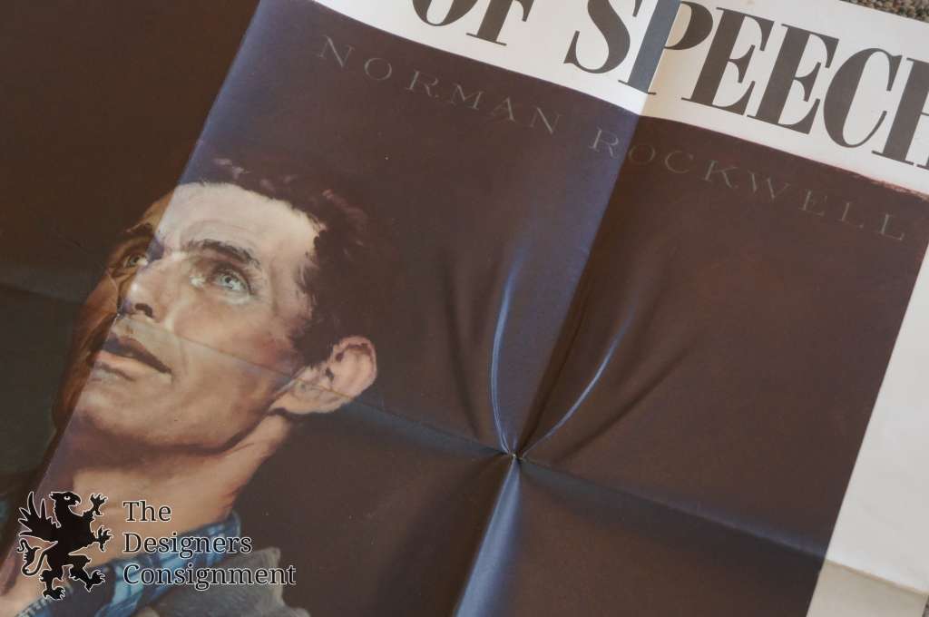 Original set of ''Four Freedoms'' posters by Norman Rockwell from 1943, the format size of 28 x 40''. This size was a very rare print as most you will find are of the largest or smaller size. Four posters depict ''Freedom of Speech'', ''Freedom of Worship'', ''Freedom from Want'' and ''Freedom from Fear'', four tenets of President Franklin D. Roosevelt's 1941 State of the Union address that were subsequently incorporated into the United Nations charter. Rockwell was so inspired by the speech that he created the oil paintings in 1943, which were then featured in ''The Saturday Evening Post'' and reproduced as war bond posters by the Office of War Information. Original posters have OWI printing information at bottom, including the date of 1943.