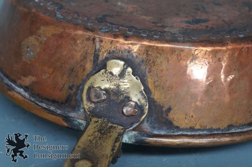 A rare antique copper pan with fold away handle for storage. Handle is still fully functional. A great addition to any collection