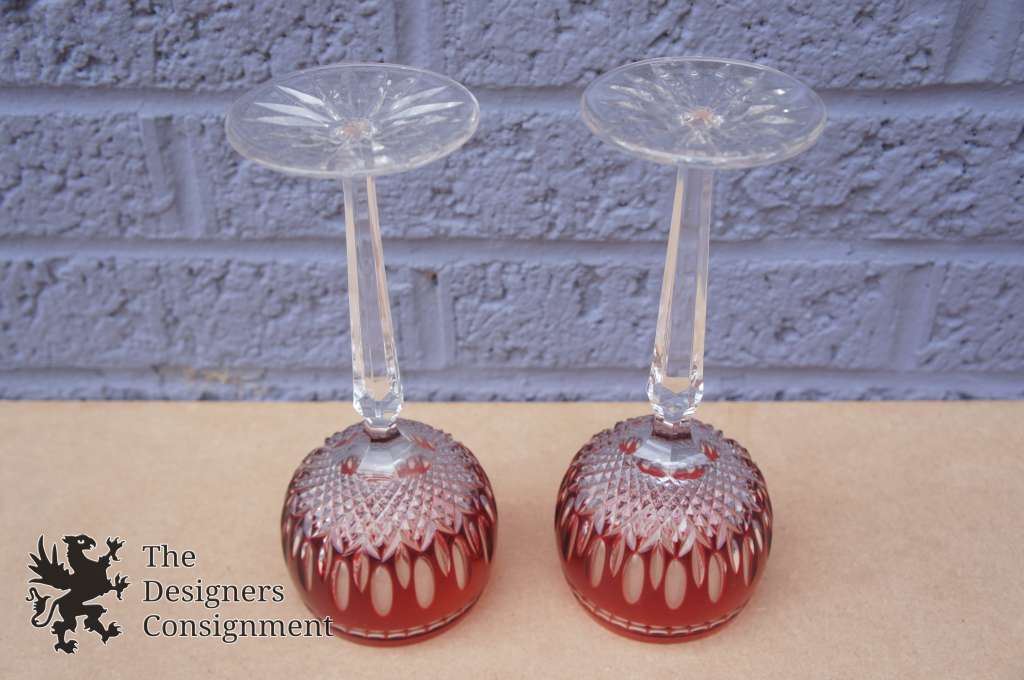 2 Waterford Clarendon Cut to Clear Ruby Crystal Glass Wine Goblets Faceted Hock