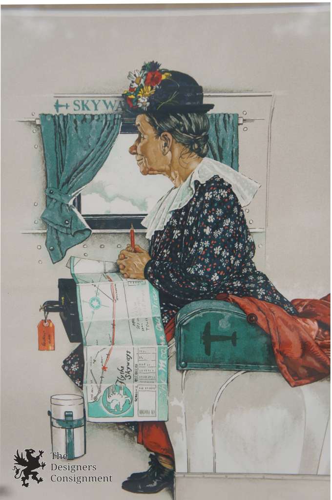 Vintage Norman Rockwell Signed Lithograph 83/200 First Flight Old Woman Airplane