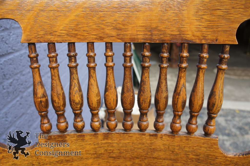 A gorgeous American Arts and Crafts Mission chair. Made in Indianapolis, Indiana, circa 1930's-40s. This gem features a spindle side and back leading to a shielded crown and serpentine apron. Made from Quartersawn (Tiger Oak) with a bentwood seat. Carved accentsordainthe front sides of the chair. A remarkable piece that will look great in any setting.