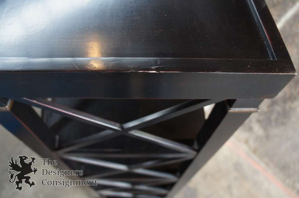 Gently Used - Paint Loss; Rubbing. Trim piece missing towards the base.