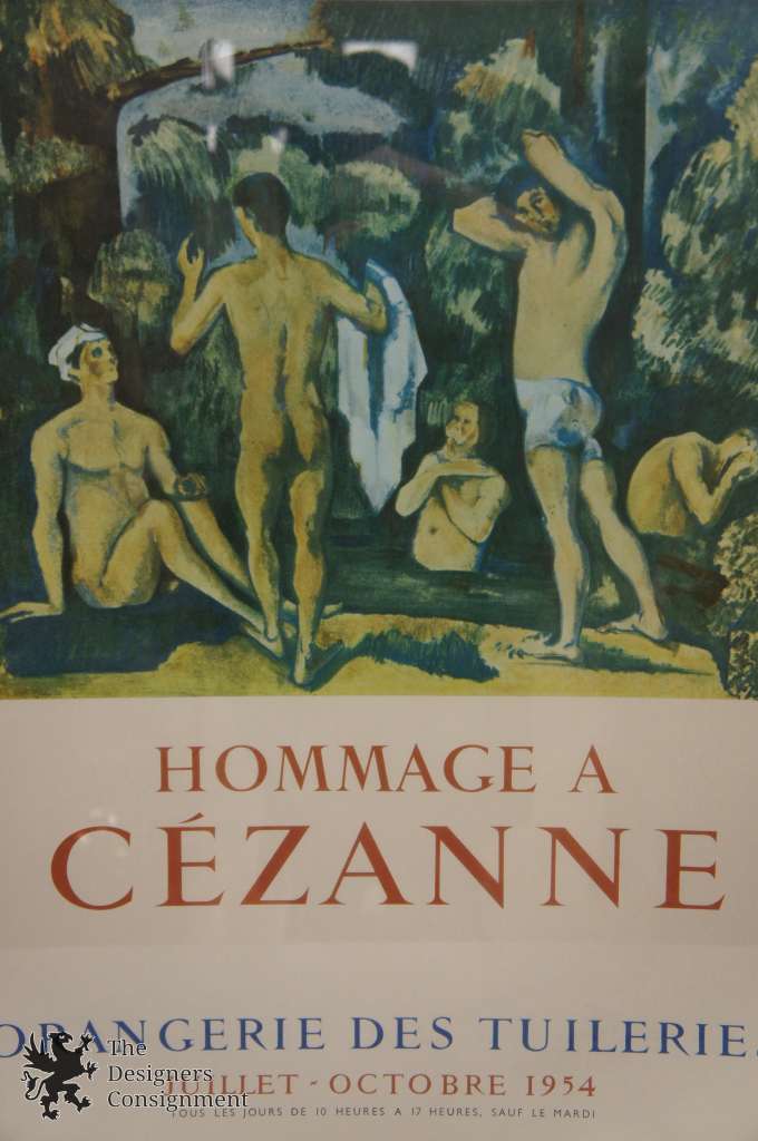his poster is for an hommage of Cezanne at the Orangerie des Tuileries, in France. From an edition size of 500 prints, it's a lithograph printed by Mourlot in 1954 and features Cezanne's 'The Bathers'. Unlined and from a private collection.