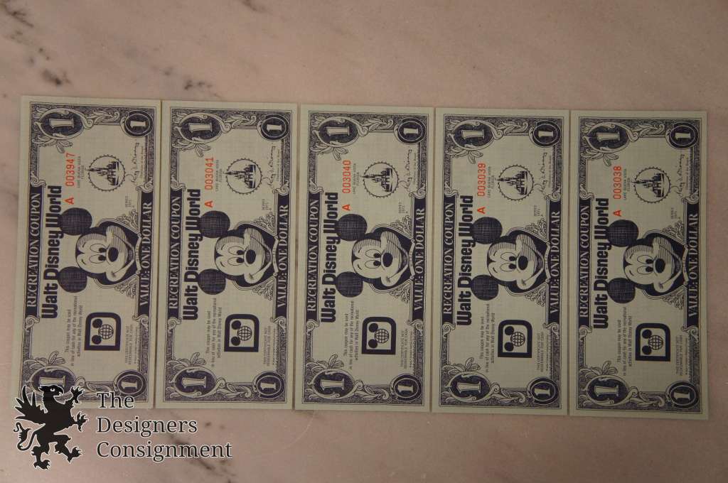 5 Vtg Original Walt Disney World Dollar Recreation Coupon 1971A XF Mickey Mouse