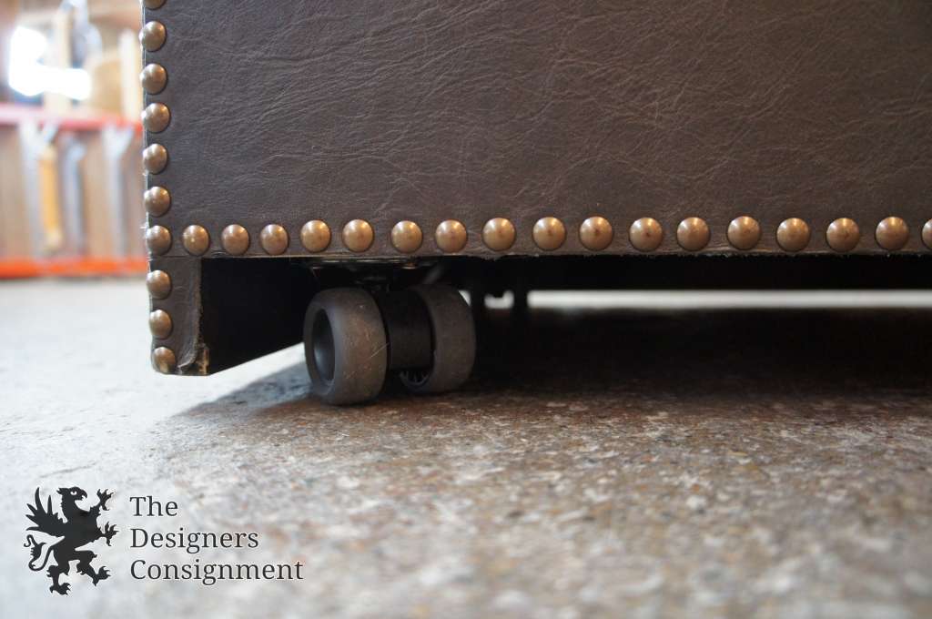 Accented with hundreds of hand-hammered brass-finish nailheads