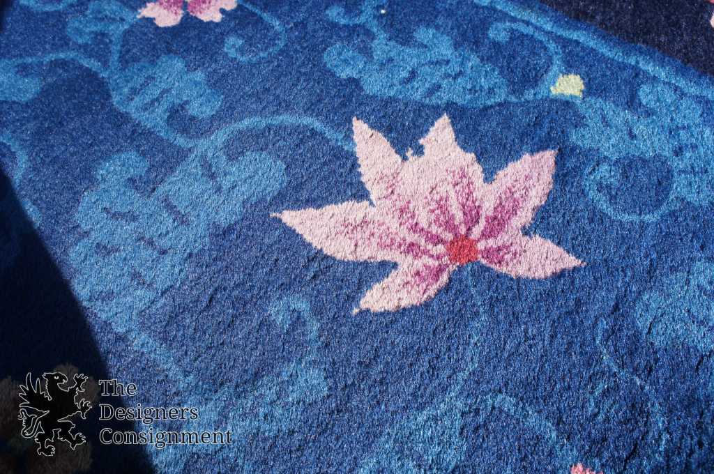 Art Deco Chinese Oriental Oval Rug. Meticulously detailed with beautiful orchids!