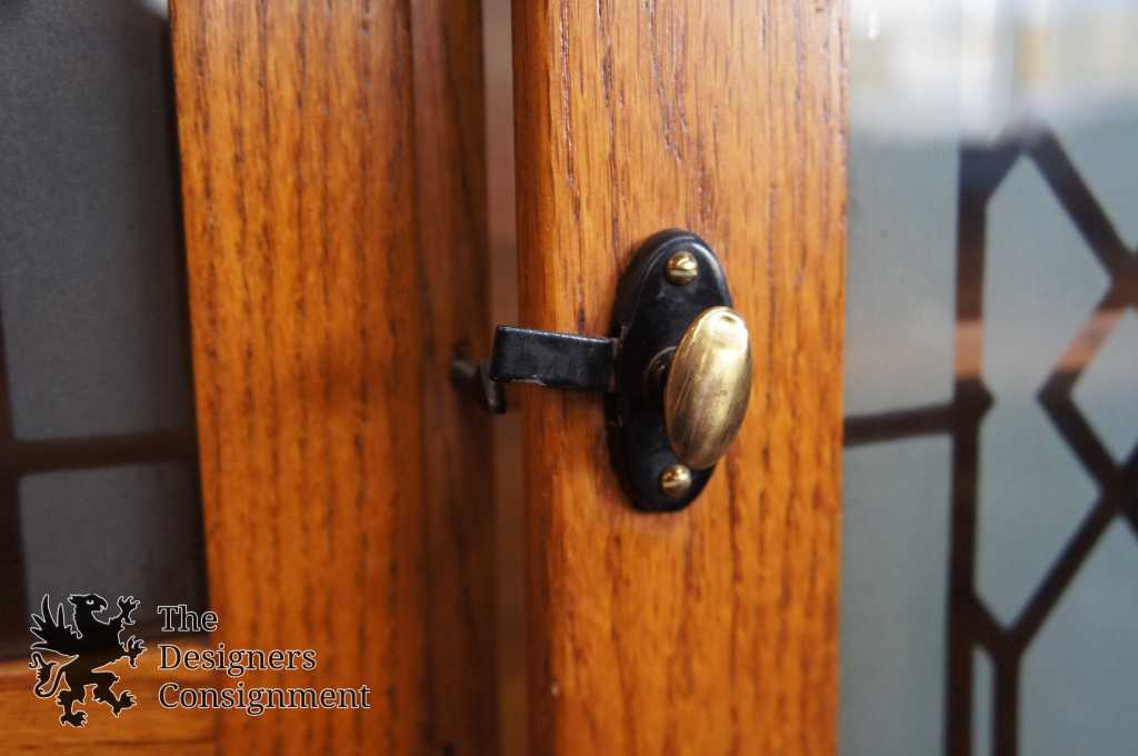 Very Good Condition. This piece was professionally refinished at some point, and lightly used since. There is dent/ crack in one of the brass cabinet pulls
