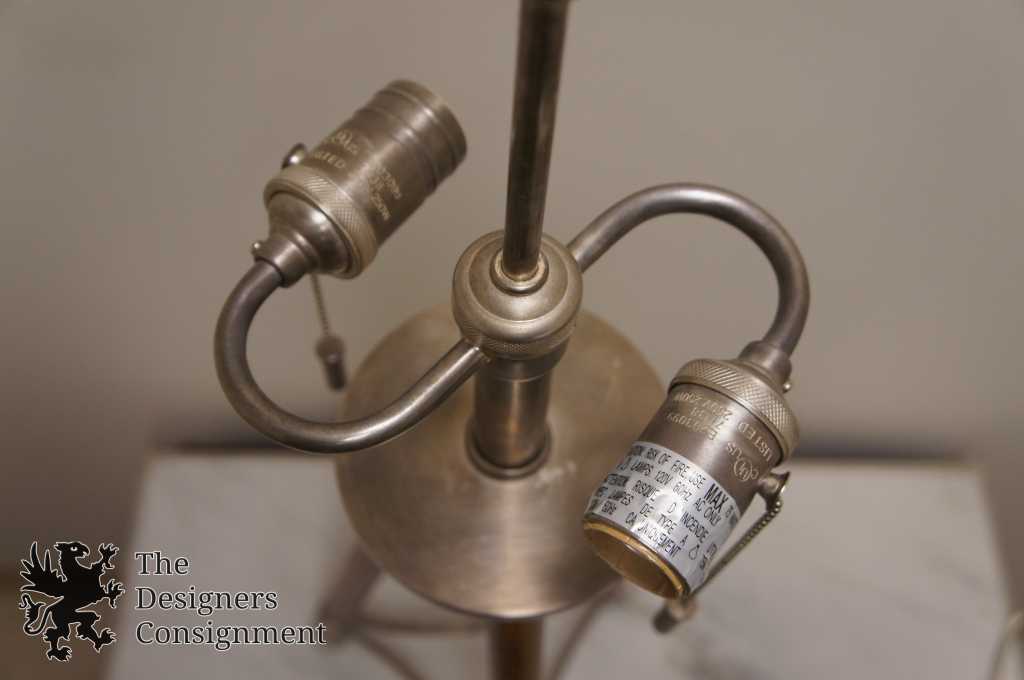 Beautiful Campaign style lamp with 2 lights. Features a tripod wooden base with metal accents.