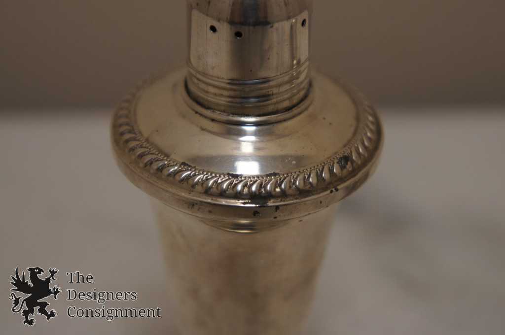 A lovely pair of sterling shakers with a glass lining and weighted base.