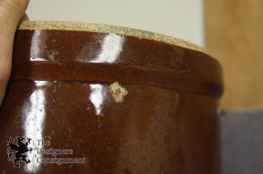 A lovely brown RRP 5 gallon crock. Robinson Ransbottom started making stoneware crocks in Roseville Ohio in 1900. They remain popular by collectors today.