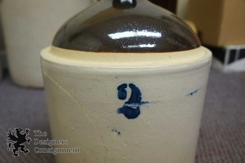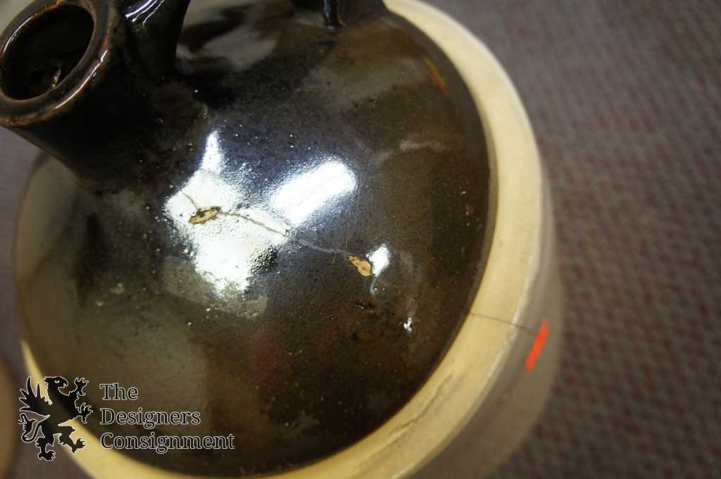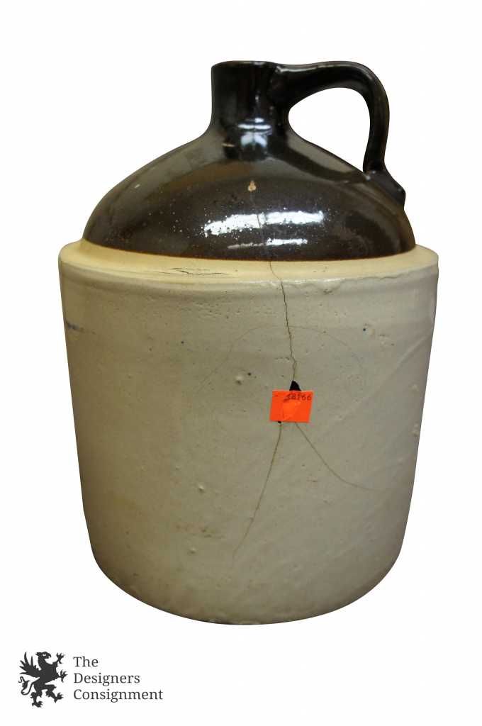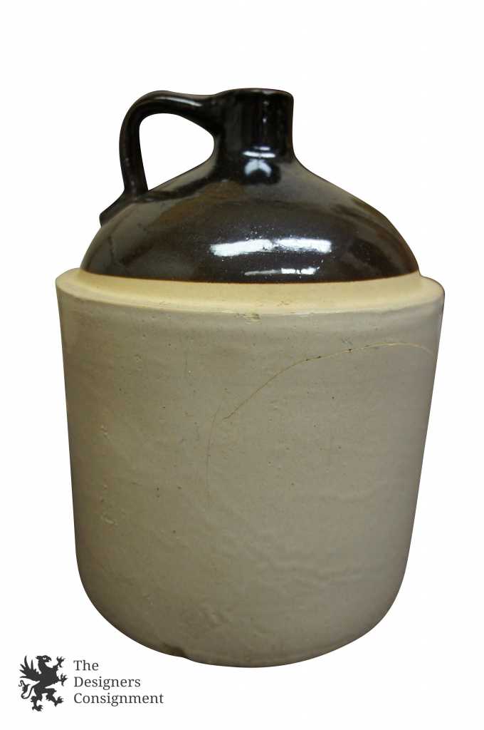 Antique 2 Gallon Crock Jug Earthenware Ceramic Brown and White w/ Handle Country 222925336615