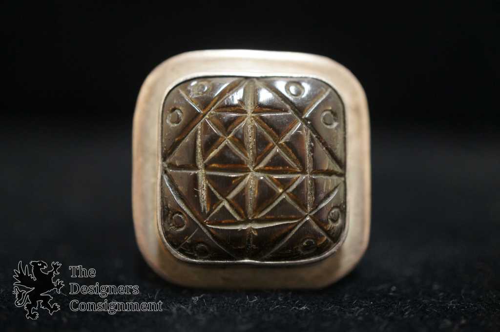 Carved Onyx set in Sterling Silver with a geometric pattern. A great addition to any collection.
