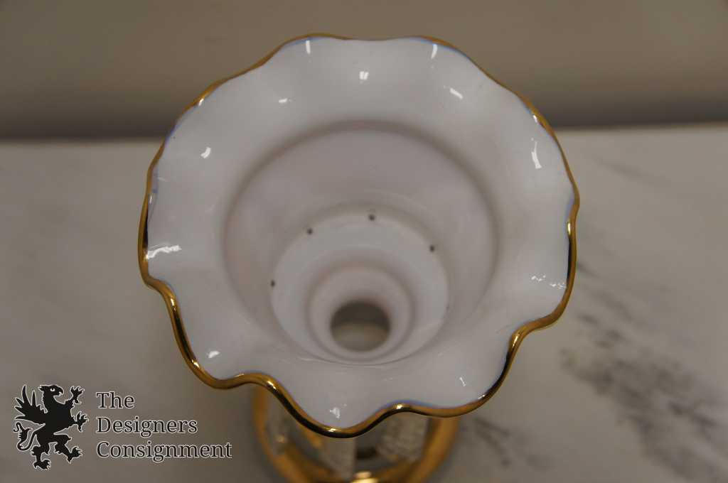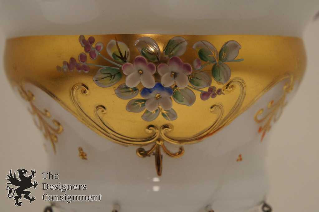 Milk Glass Mantel Vase or candle holder with branched drop crystals. Hand painted gold and floral detail. A great addition to any collection.