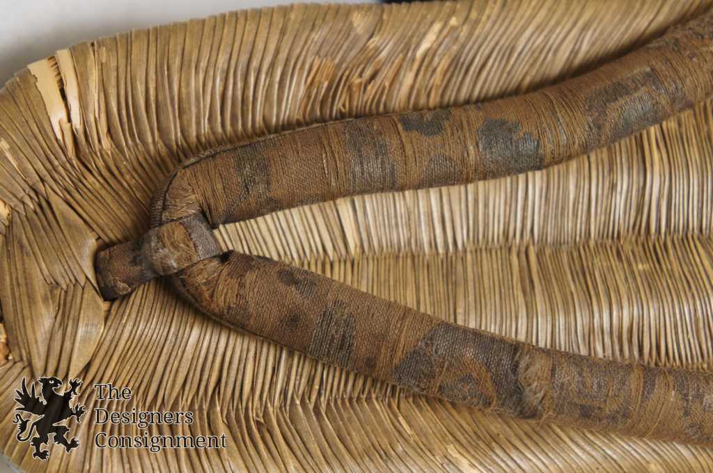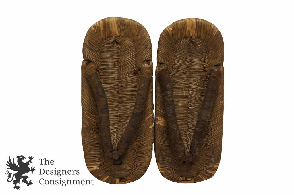Vintage Black Lacquer Japanese Okobo Sandals Geisha Wood Rattan Cloth Strap