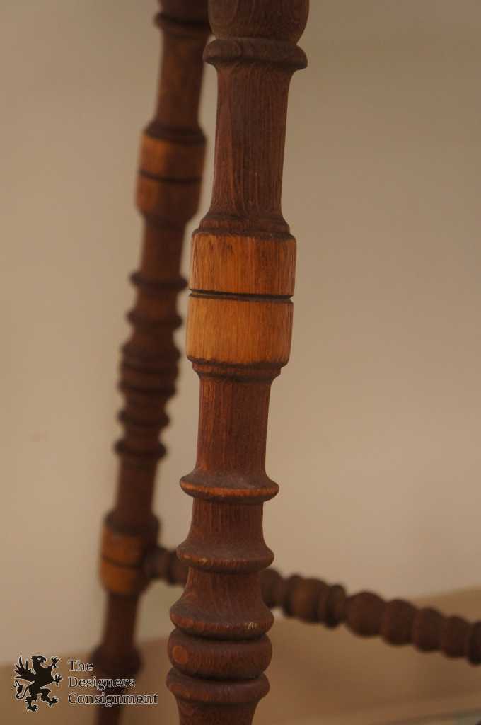 Beautiful antique Victorian parlor table with chessboard top. Made from Oak with turned legs and a spindled apron.