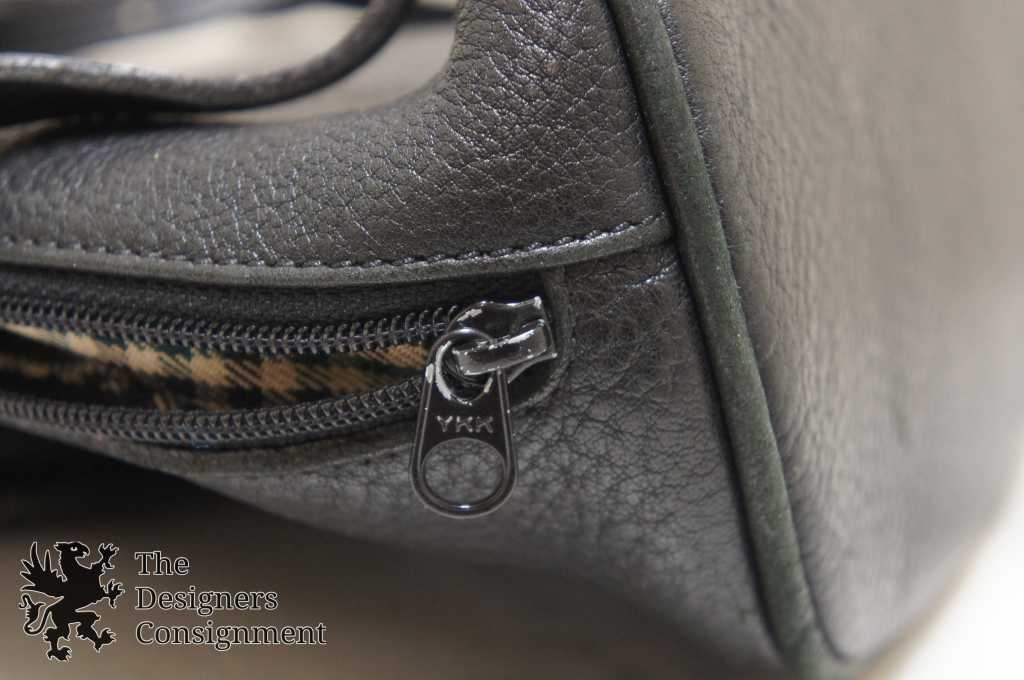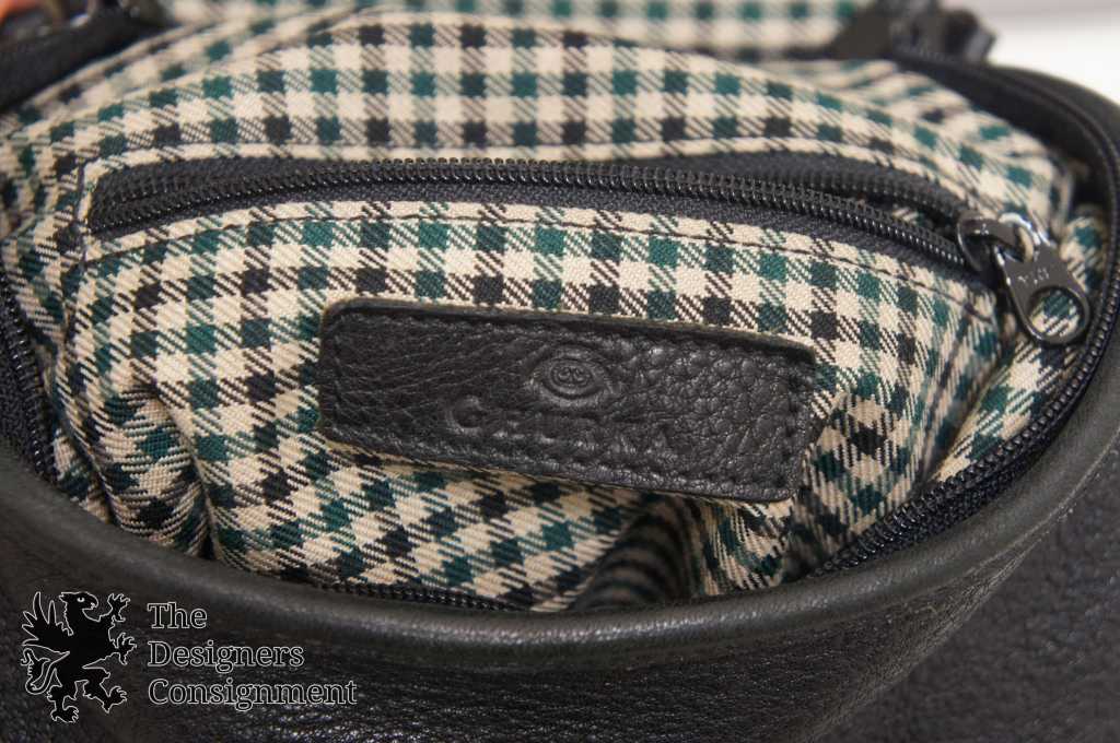 Ashley No. 138 was made by hand and custom brass hardware. This light, small bag was designed for busy women who have to switch activities but seldom have time to change handbags. This bag can be worn as easily transition from day to night, switching from shoulder bag to backpack with two adjustable buckled shoulder straps. The bag has check lining with a zipper pocket inside.