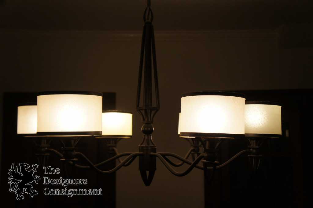 Here we have a traditional light with a flare of mission styling. This light is made from Iron with a sleek design leading to 6 arms with drum shades. The shades are frosted glass with a crackled finish. A great touch for any space!