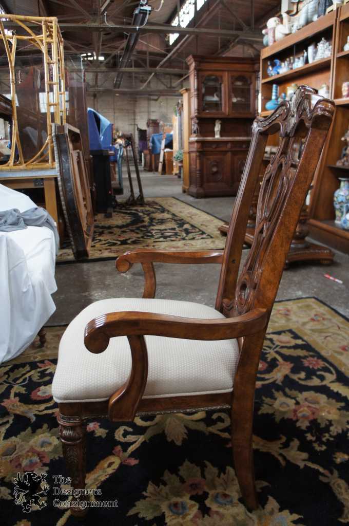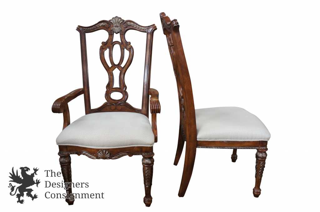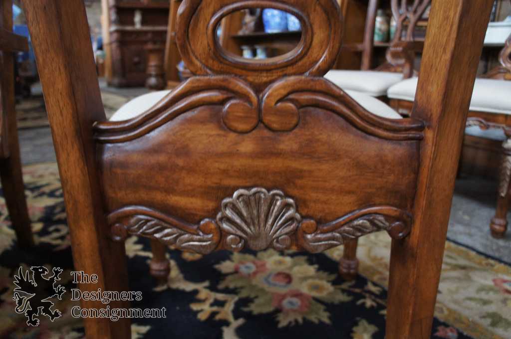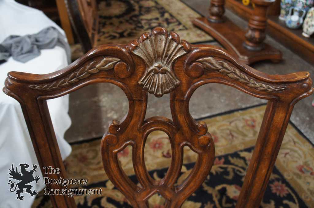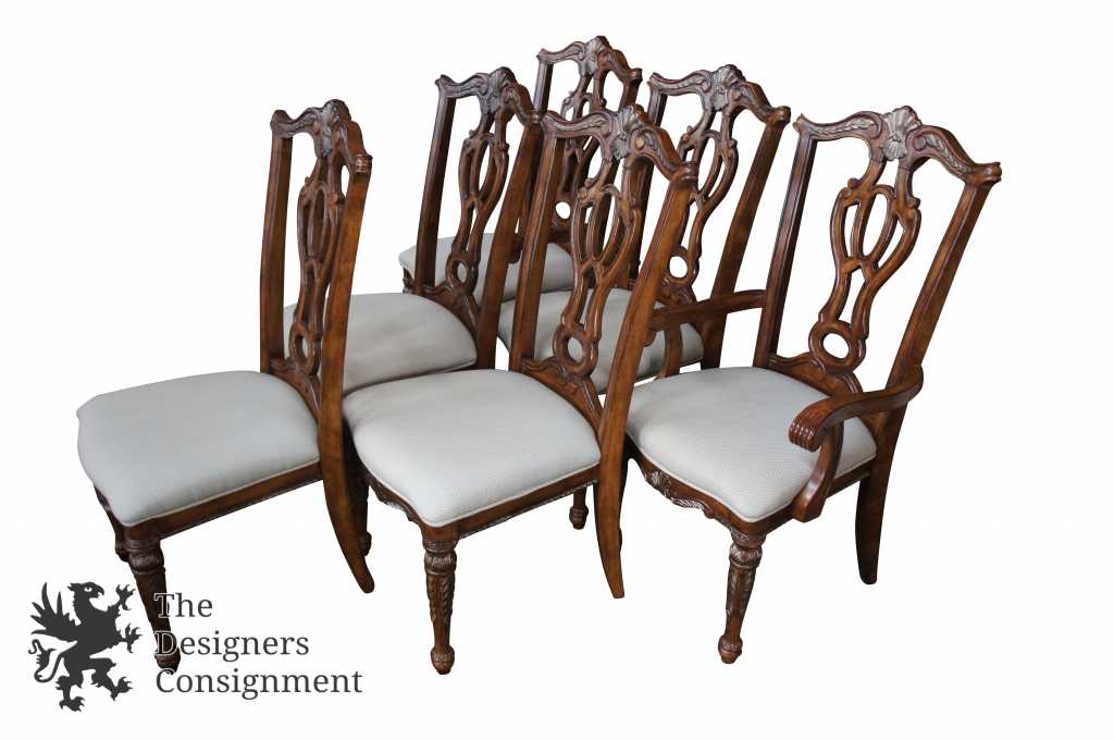 Here we have a stunning set of 6 dining chairs with a neat collaborative styling. The chairs are mix of Chippendale and Rococo styling. Finished in Mahogany with pierced back and carved and scalloped accents.