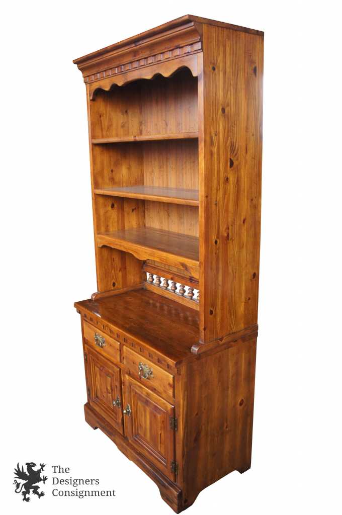 Pilgrim Pine by Link-Taylor. Early American Style chest with bookcase. Features 3 upper shelves, 2 drawers and lower cabinet with shelf.