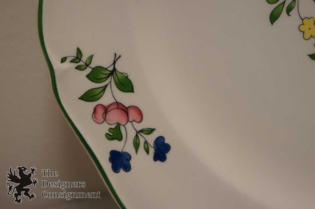 25 Pc Lorraine Filet Vert Rose Gien France Decore Main China Plates Scalloped