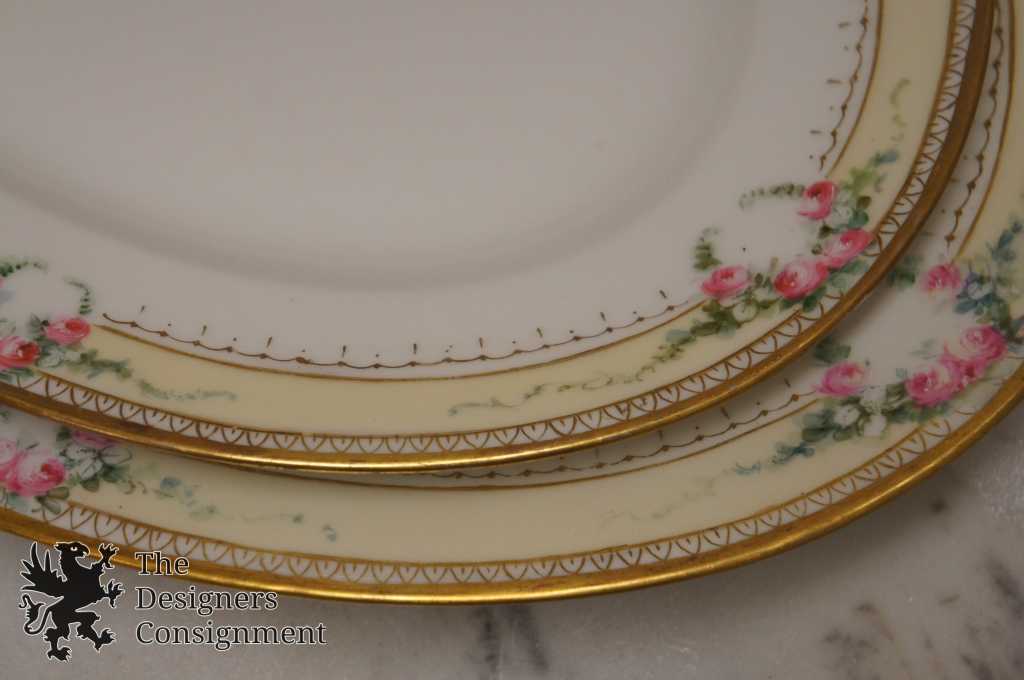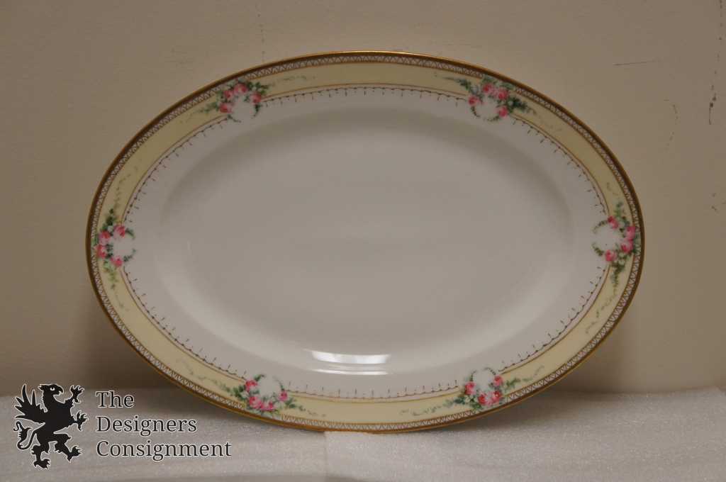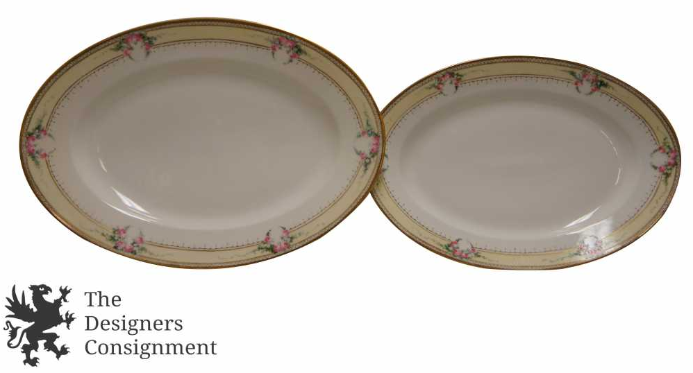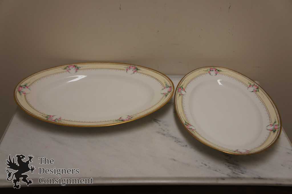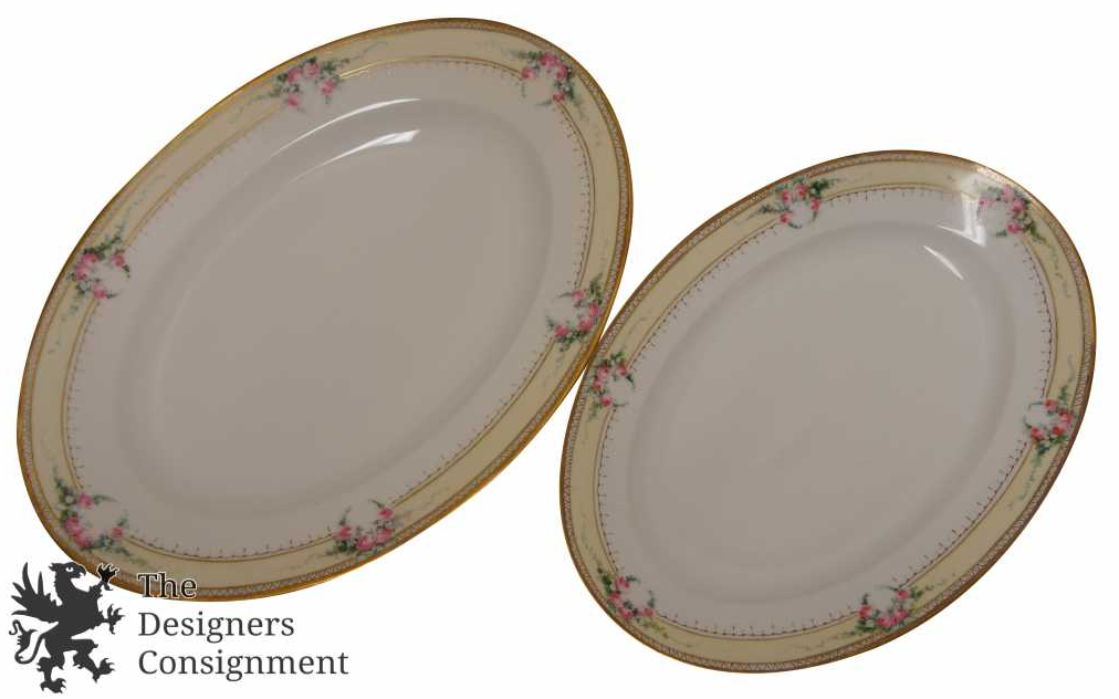 A beautiful pair of Haviland Serving Platters. Features a pink rose pattern with gold trim.