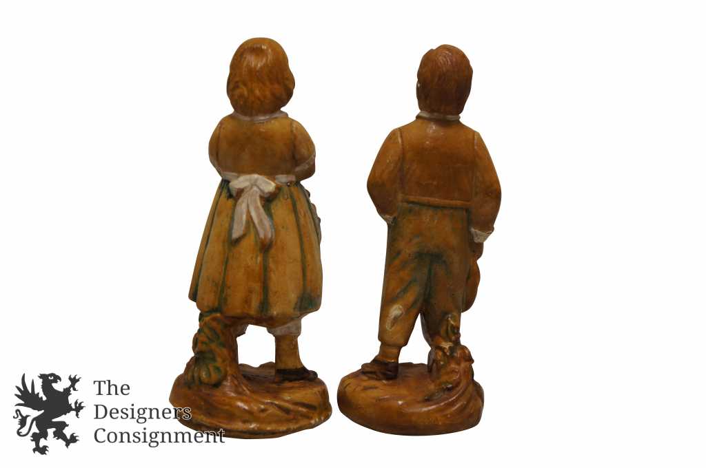 Featured are a boy and girl neatly dressed. Made from ceramic, early 20th century.