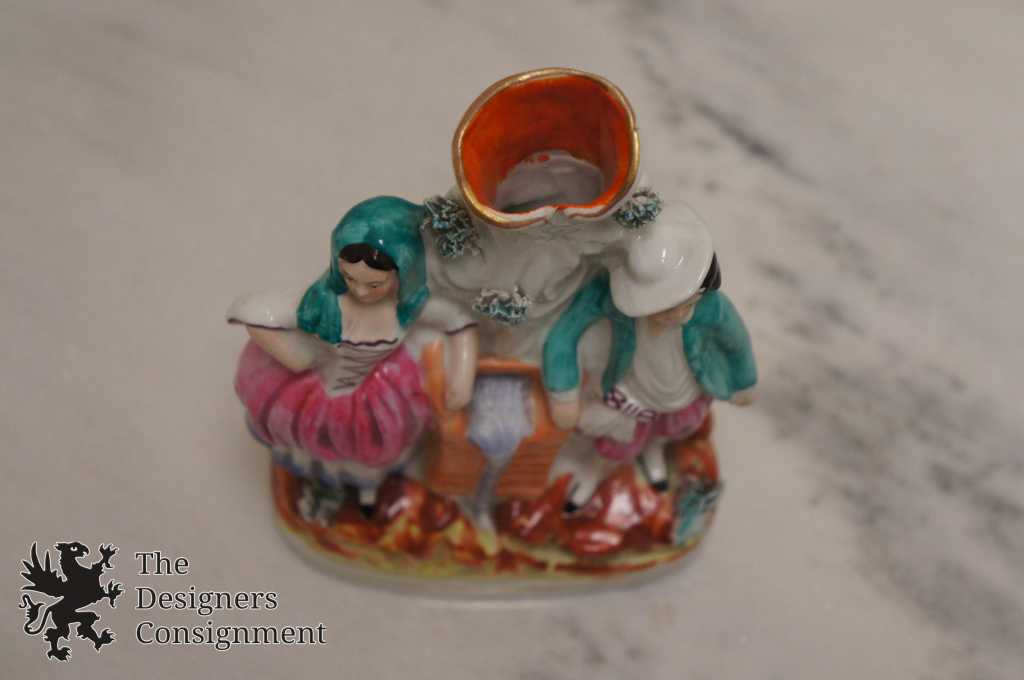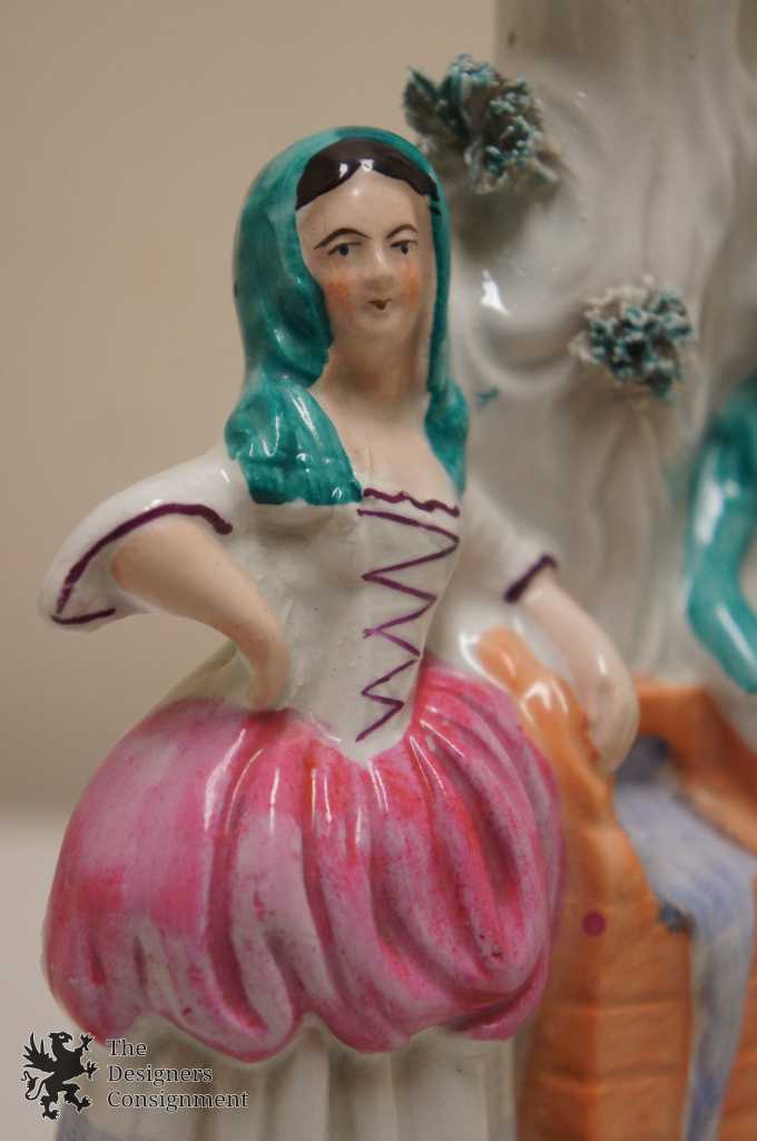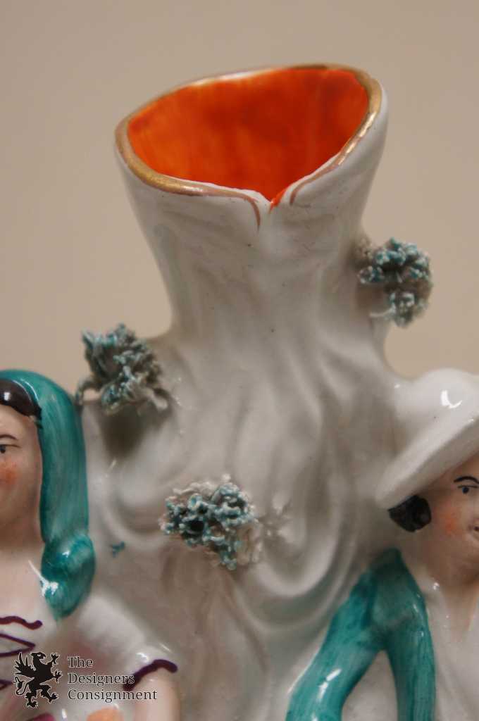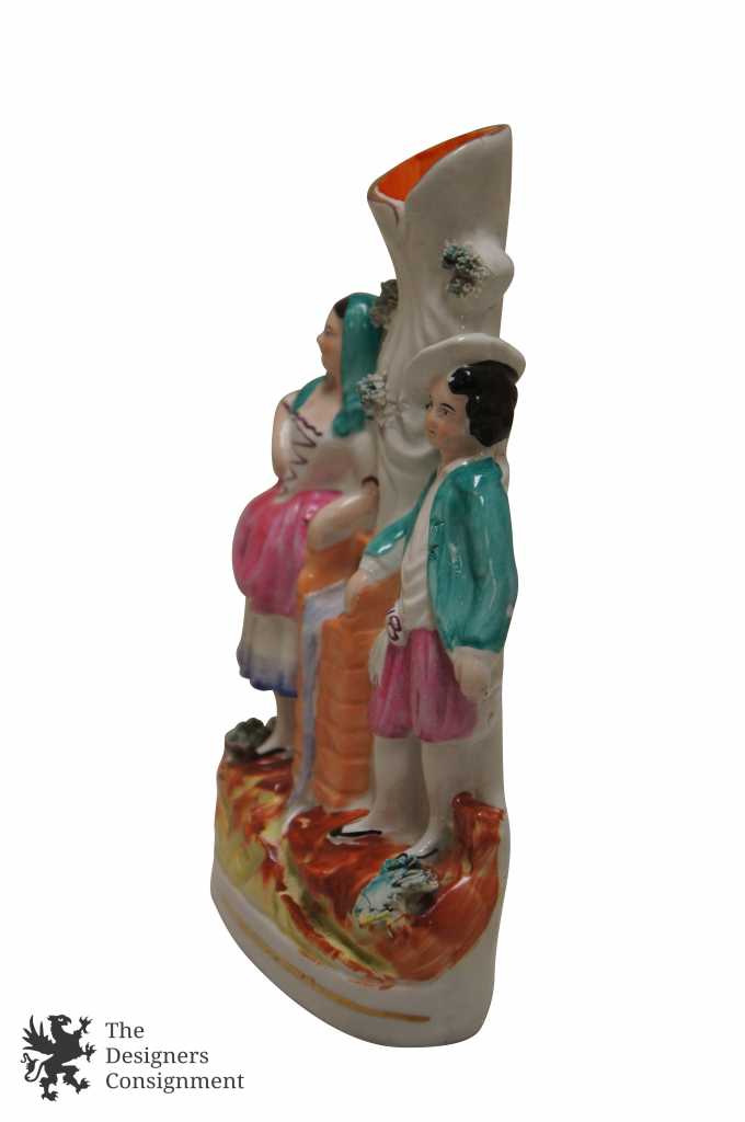 19th century Staffordshire spill vase. features a colonial couple standing over a fountain. Hand painted with intricate detail. A great addition to any collection.