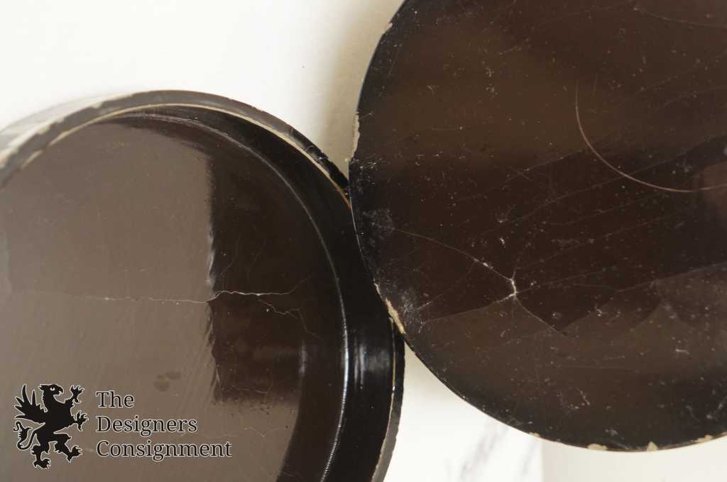 Gently Used - Some Cracks in Surface; Wood Slat Glued to Back of Tray; Chip in Edge of Box Lid