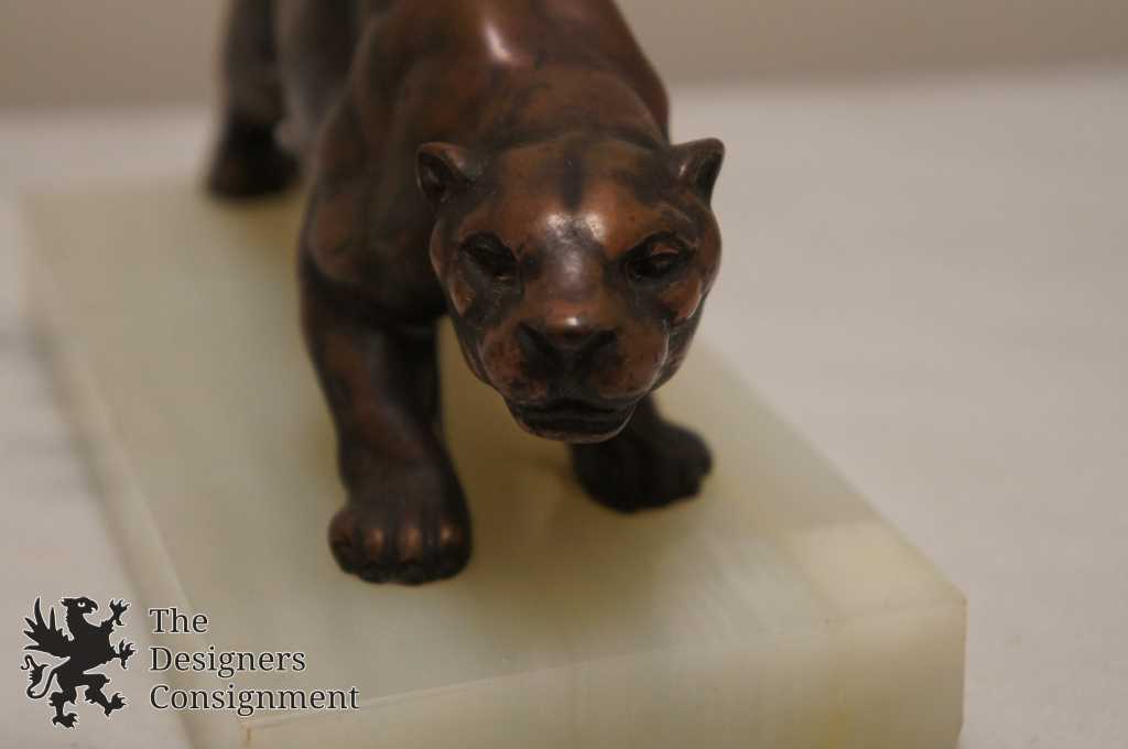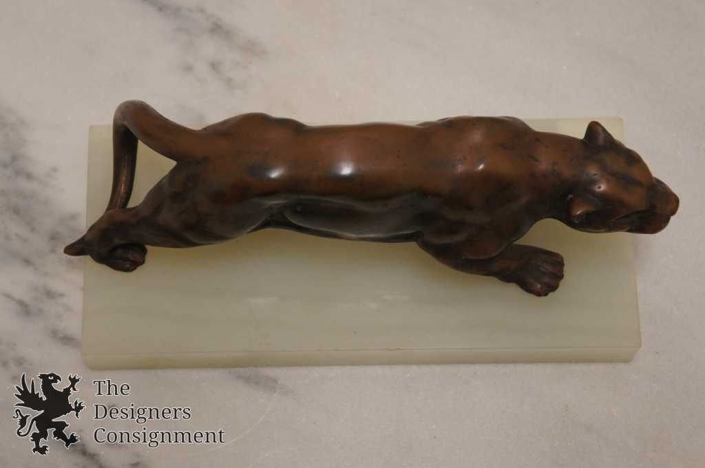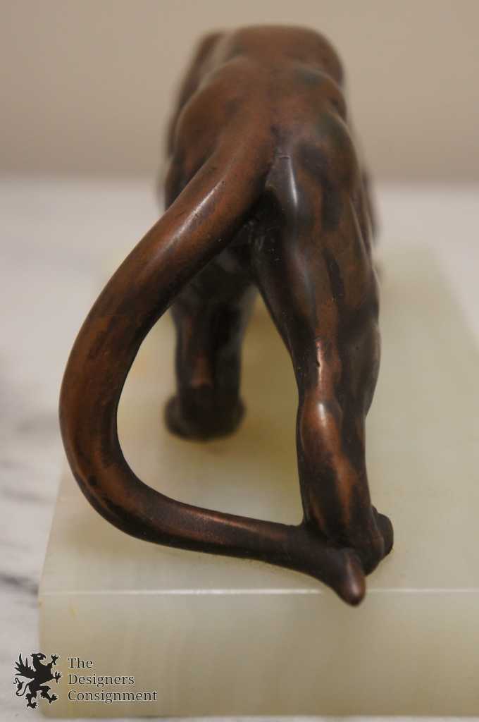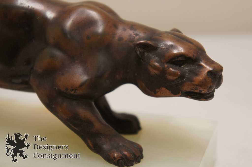 Art Deco Bronze Panther Big Cat Statue Figurine on Marble Base Animal 7.5"
