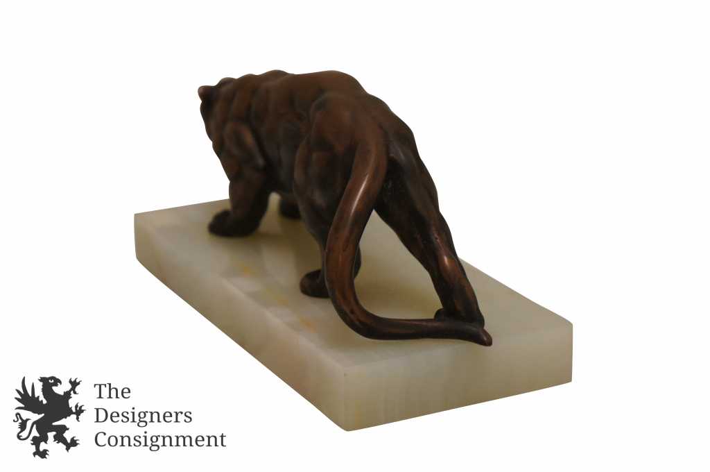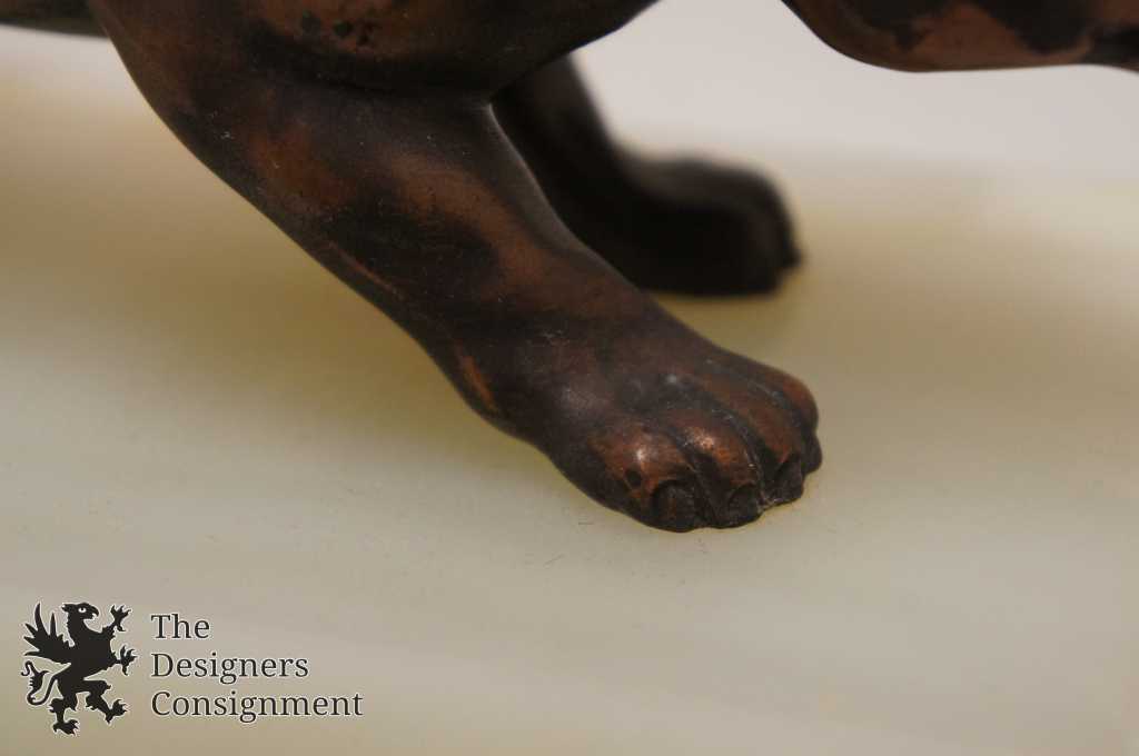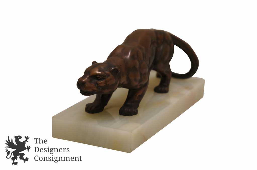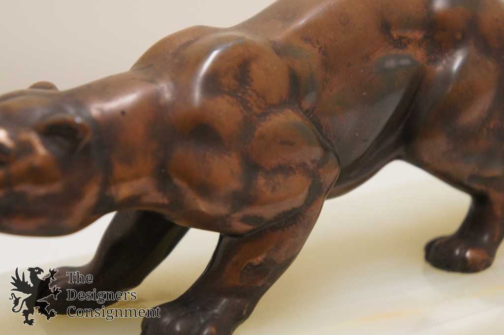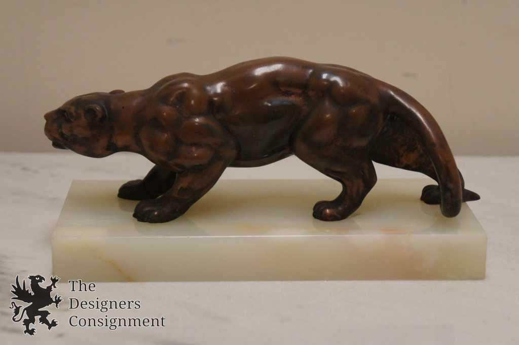 Art Deco Bronze Panther Big Cat Statue Figurine on Marble Base Animal 7.5"