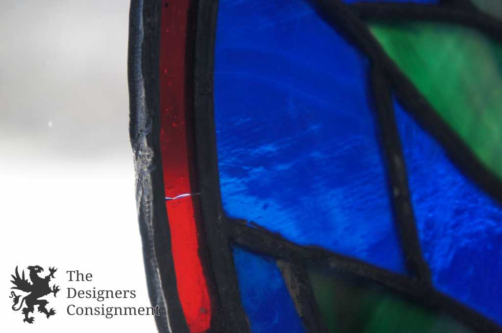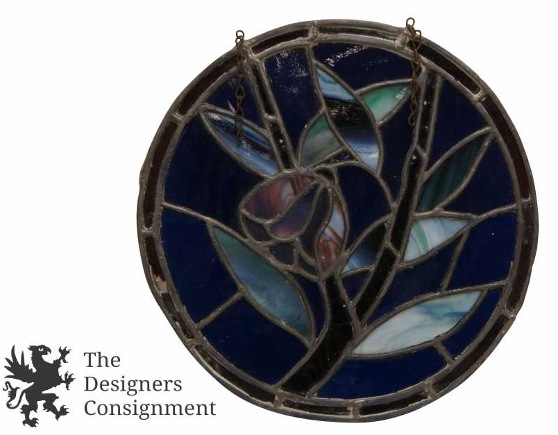 Vintage Leaded Stained Glass Wall Hanging Window Panel Red Rose Floral Round
