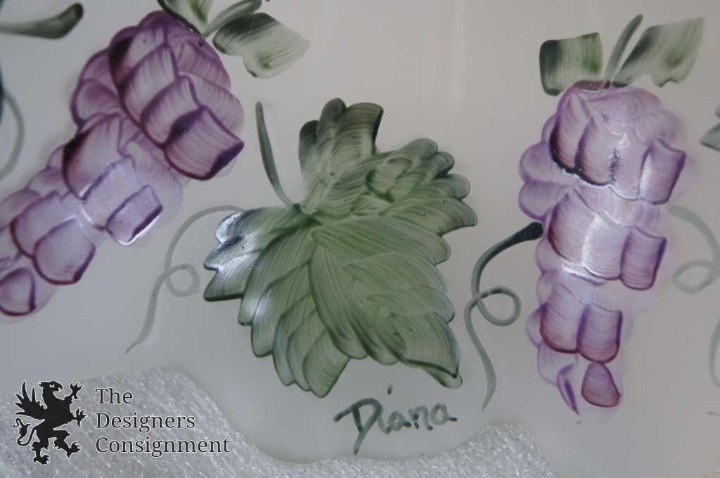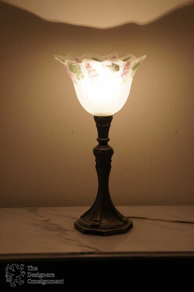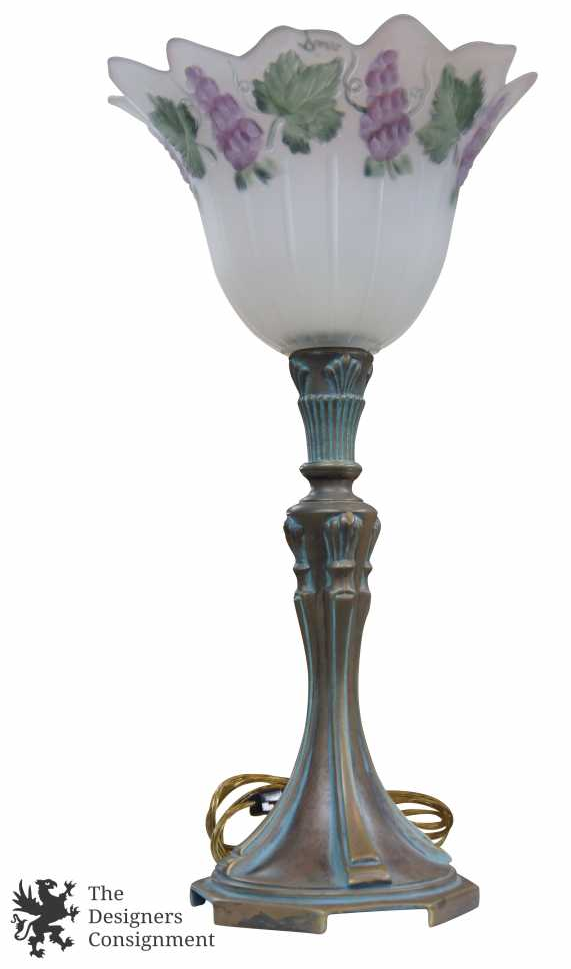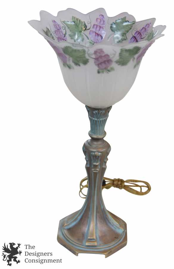 Art Deco Style Tulip Glass Table Lamp Uplight Shade Hand Painted Grapes 19