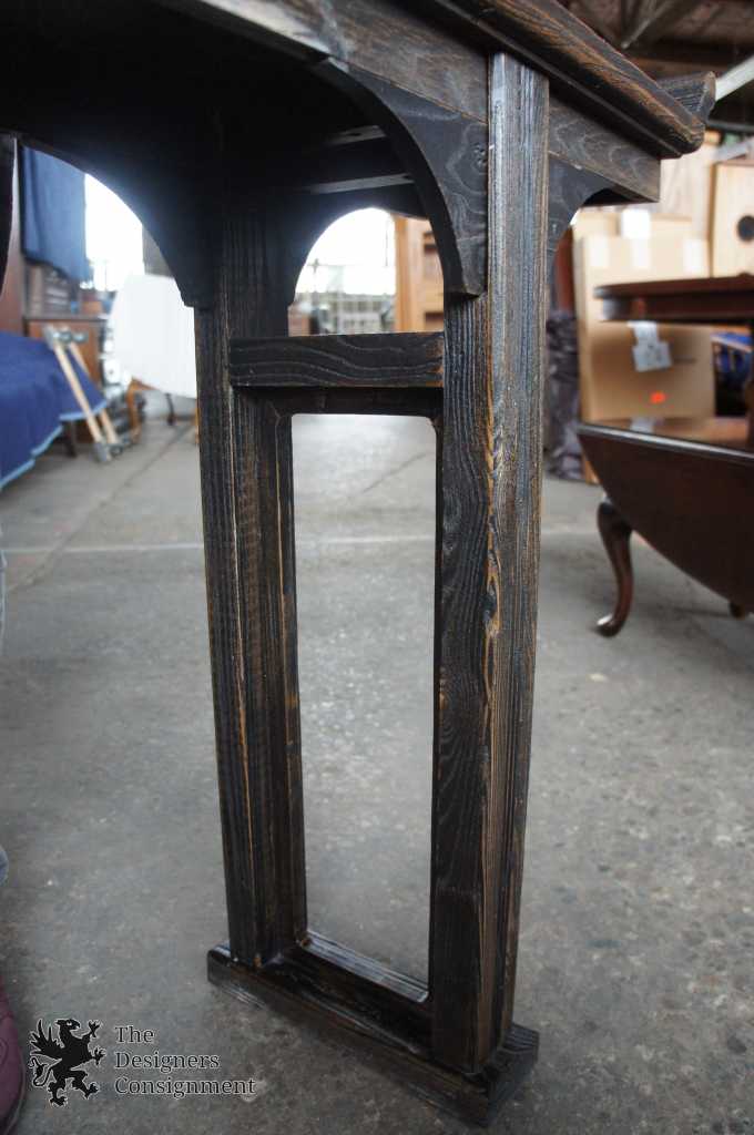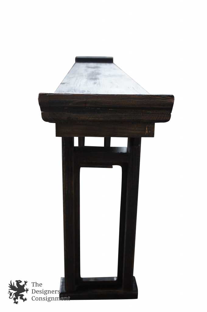 Inspired by an Asian antique, this rustic black serving table has a long, slender silhouette and shallow 12" depth perfect for narrow entries, smaller dining rooms or behind a sofa. The long, open space created beneath makes a great spot for baskets and stacks of books.