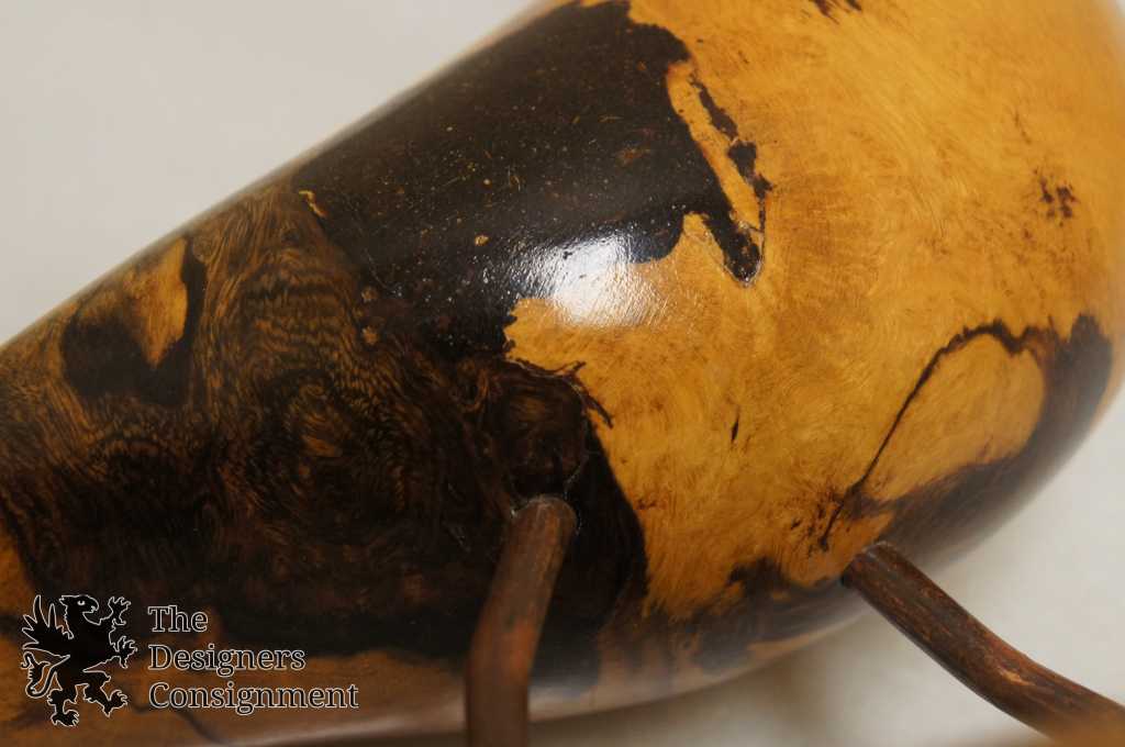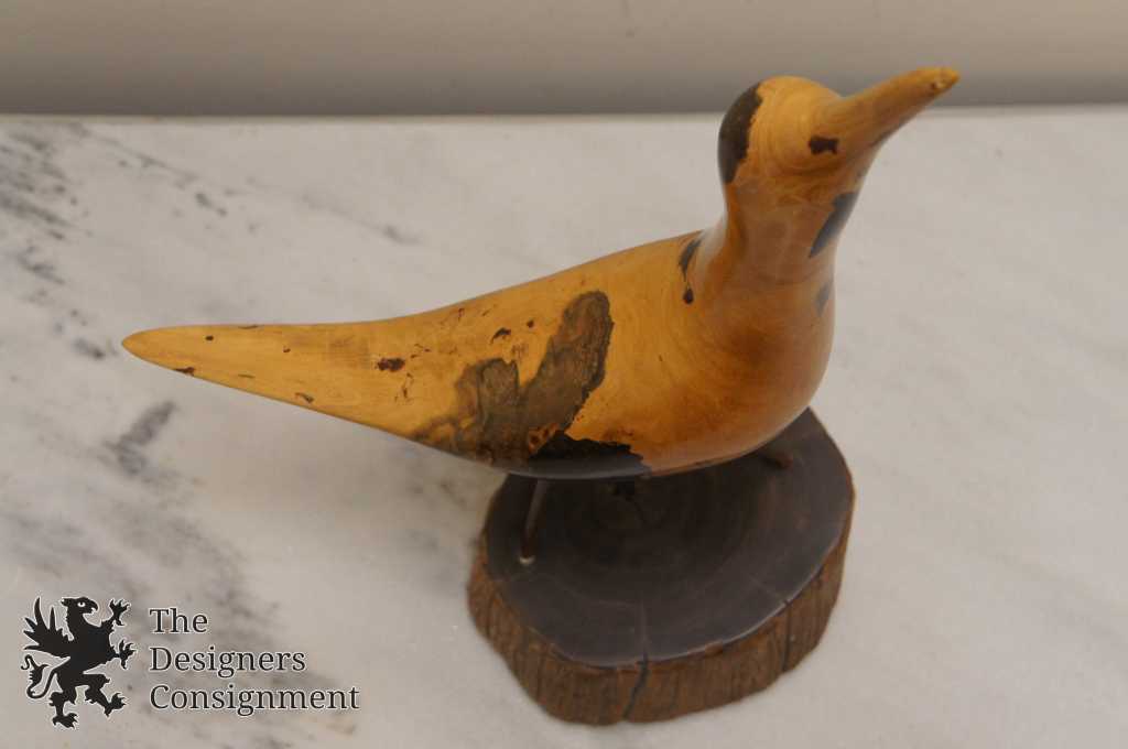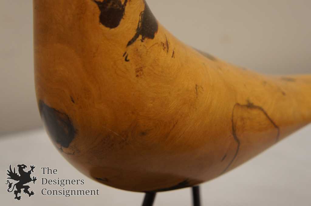 Hand carved vintage seagull sculpture. Signed Knaus. The sculpture is carved from an exotic burlwood and features iron legs on a wooden base. A unique piece that will make a great addition to any collection.