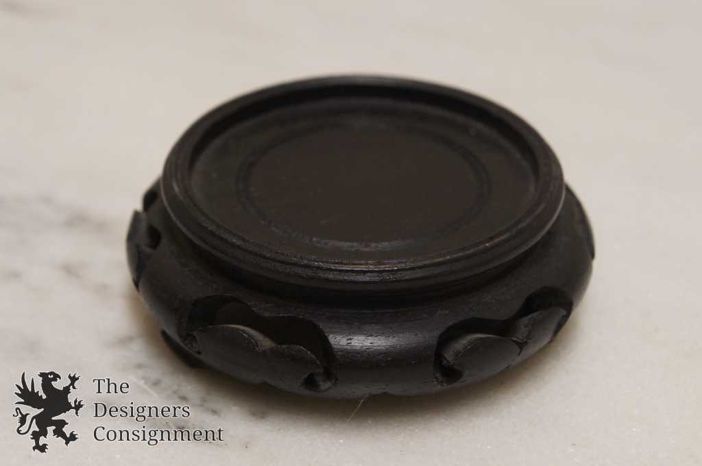 A neat bottle and stand. There is a makers sticker along the bottom, but the writing has worn off over the years.