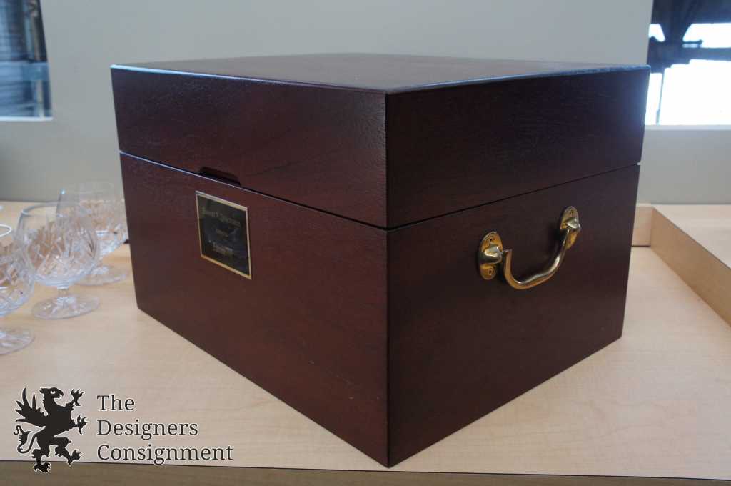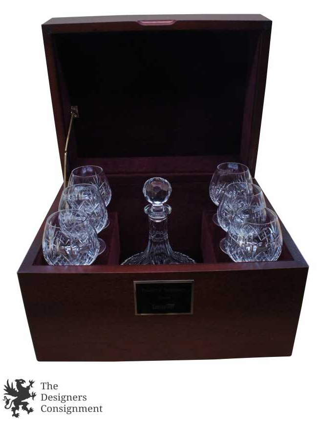 A beautiful crystal cut decanter set by Edinburgh Crystal. Complete with Mahogany Display/Storage case. Features 6 goblets & a decanter Each piece is etched/Personalized from Eatonform, Inc in Moraine, Ohio, a healthcare product group.