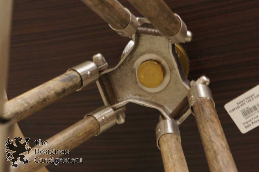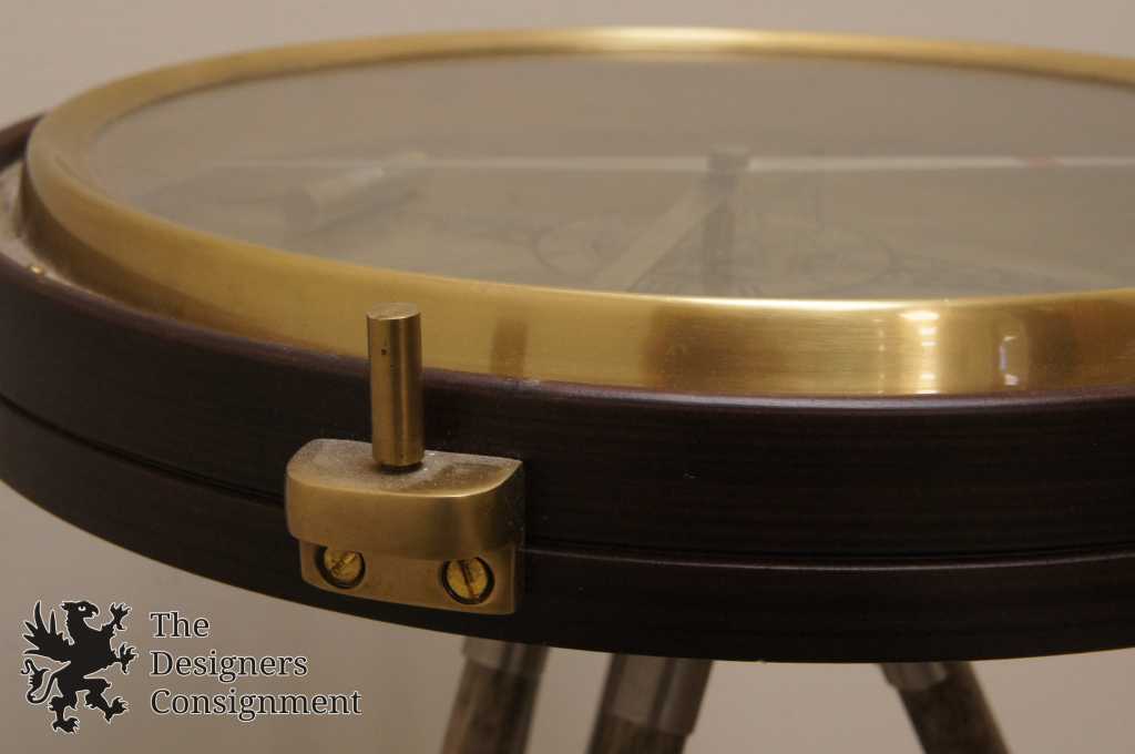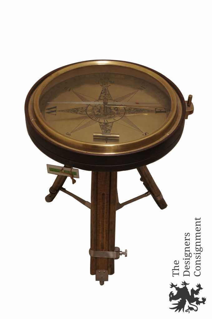 A great gift for the study or office, the compass face is etched metal and really works, so you'll always know true North. The legs adjust to the perfect height for parking a drink beside your favorite chair. Walnut with antique brass finish.