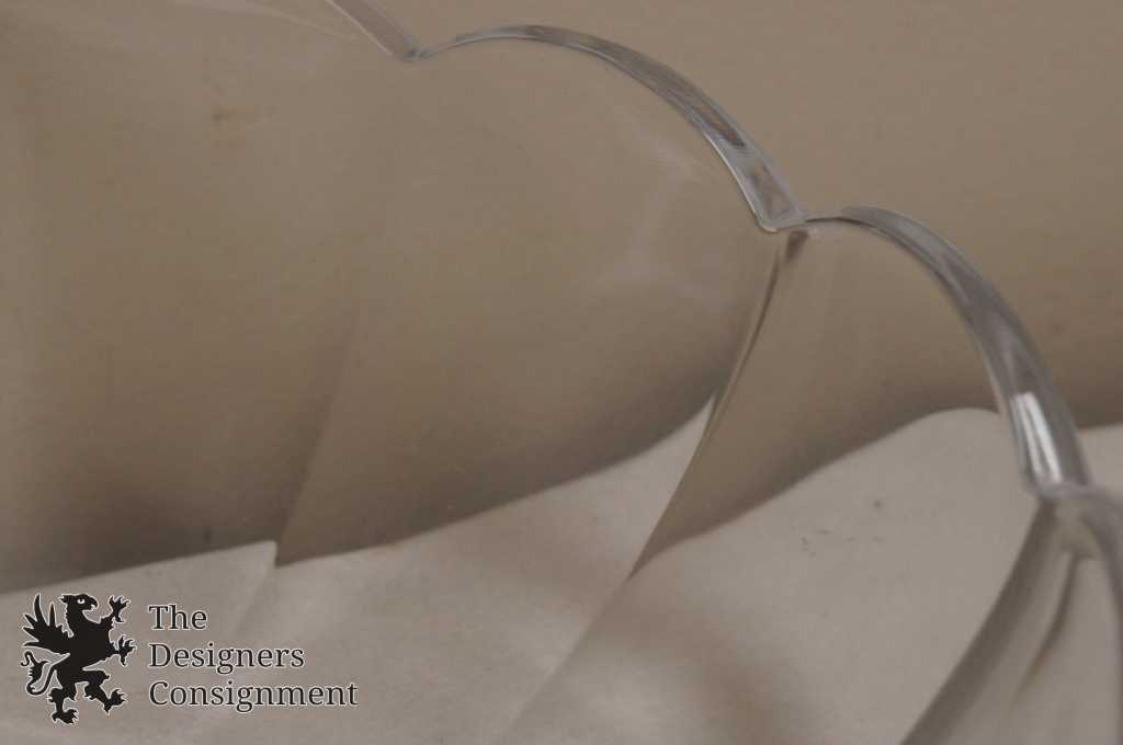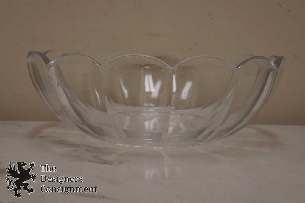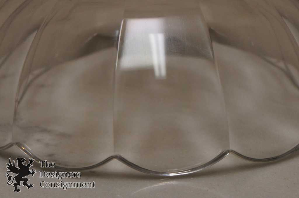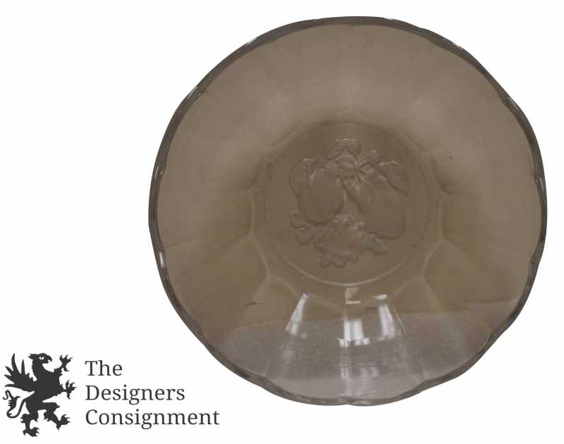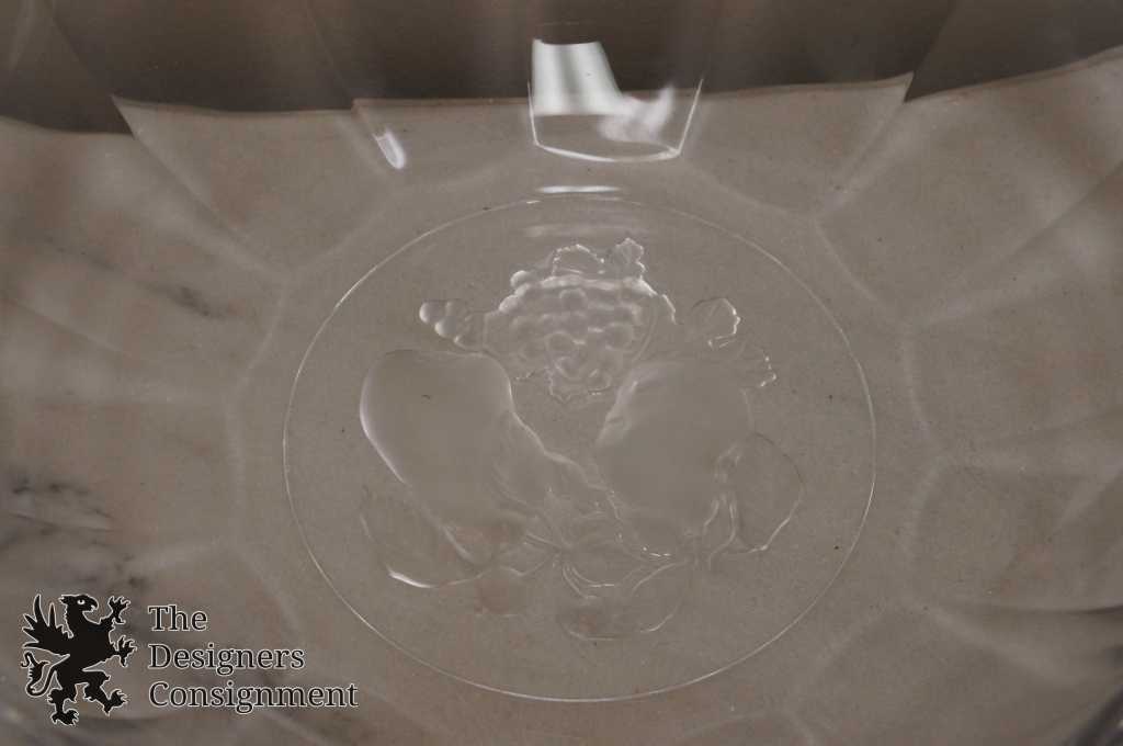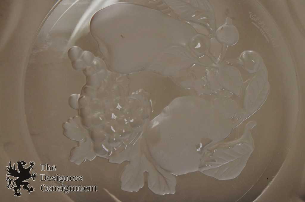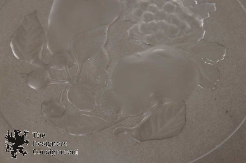 With an etched fruit design at the center and a scalloped edge it makes for the perfect serving dish. Made in Belgium. Signed along the bottom