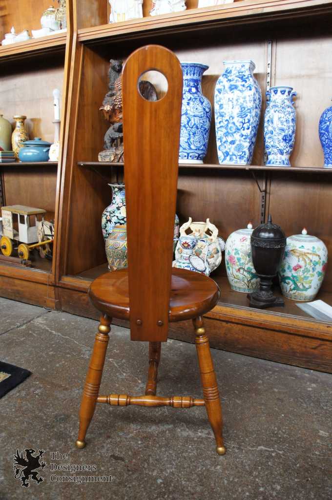 "Pouting chairs" were originally built by German immigrants who settled in Pennsylvania during the late 18th and early 19th centuries. The tall backs offered stability for reaching into higher cabinets and shelving of country kitchens. When not in use the stool was often kept in a near corner where it doubled as a resting place for children needing to contemplate the errors of their ways.