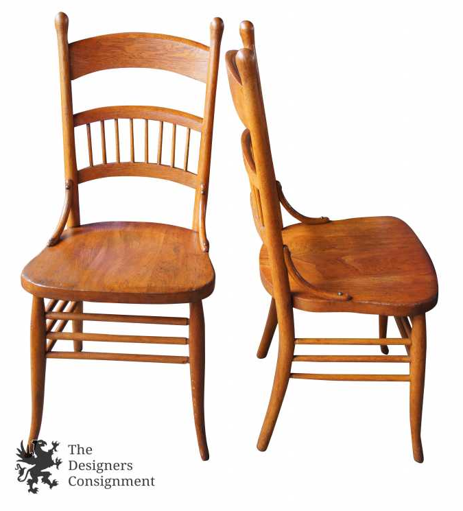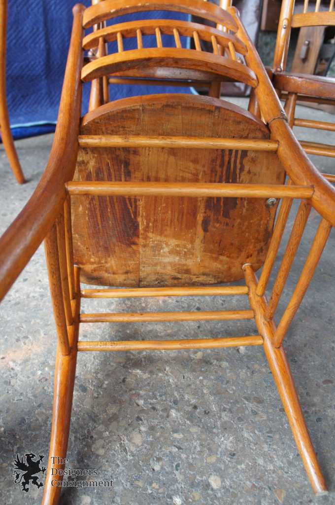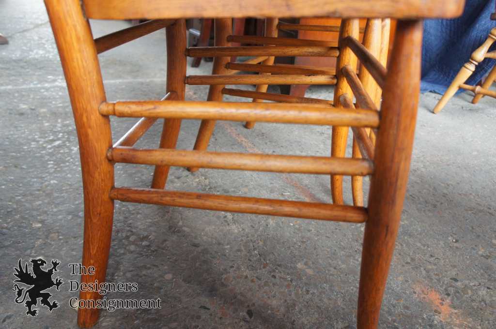 Antique set of 6 dining chairs. Primitive Country style. Made from Ashwood with a ladder style back featuring spindles along the center.
