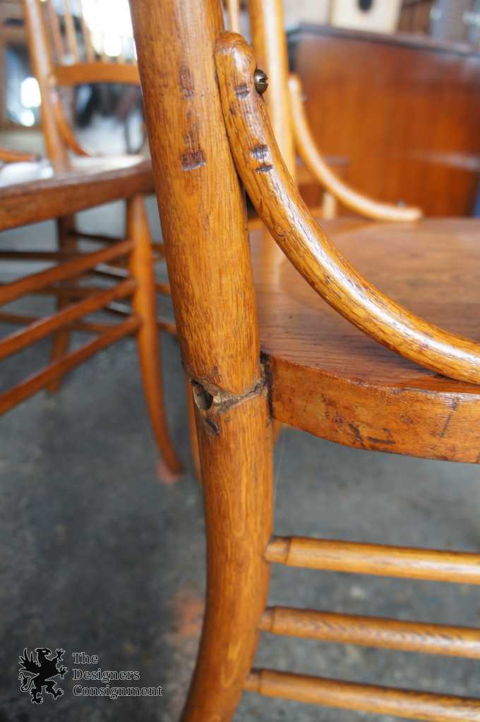 Gently Used - A Few Cracks in cross supports between back and seat. One of the chairs has a crack where the wood connects with seat. Otherwise distressing and marking. All chairs are in usable condition.
