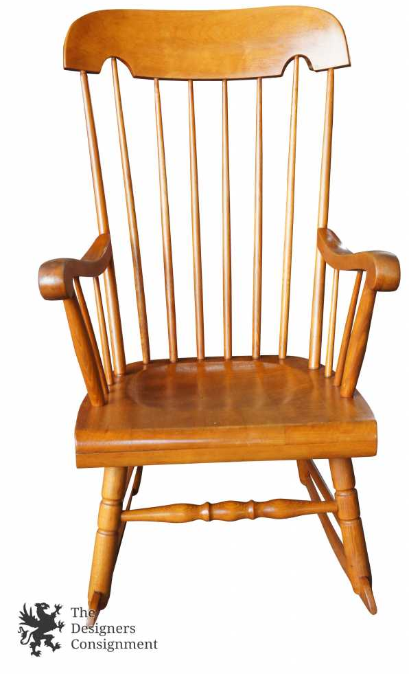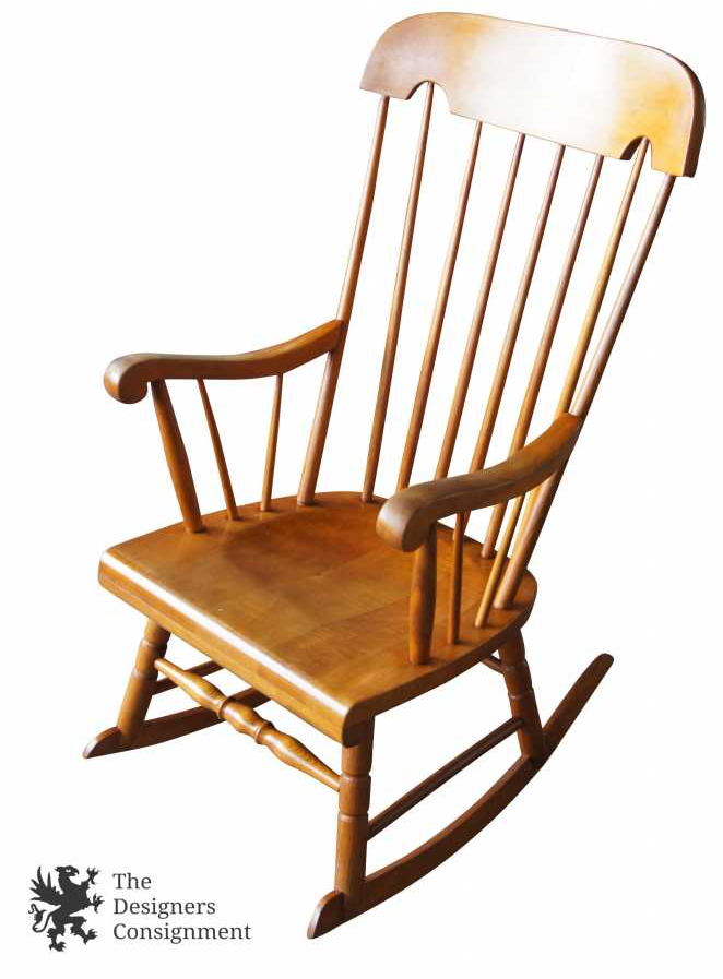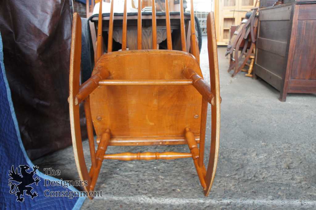 Antique Maple Boston Rocker Rocking Chair Comb Back Turned Spindle Leg 41