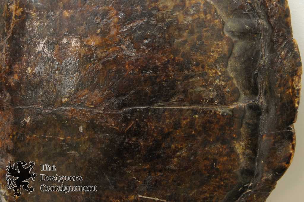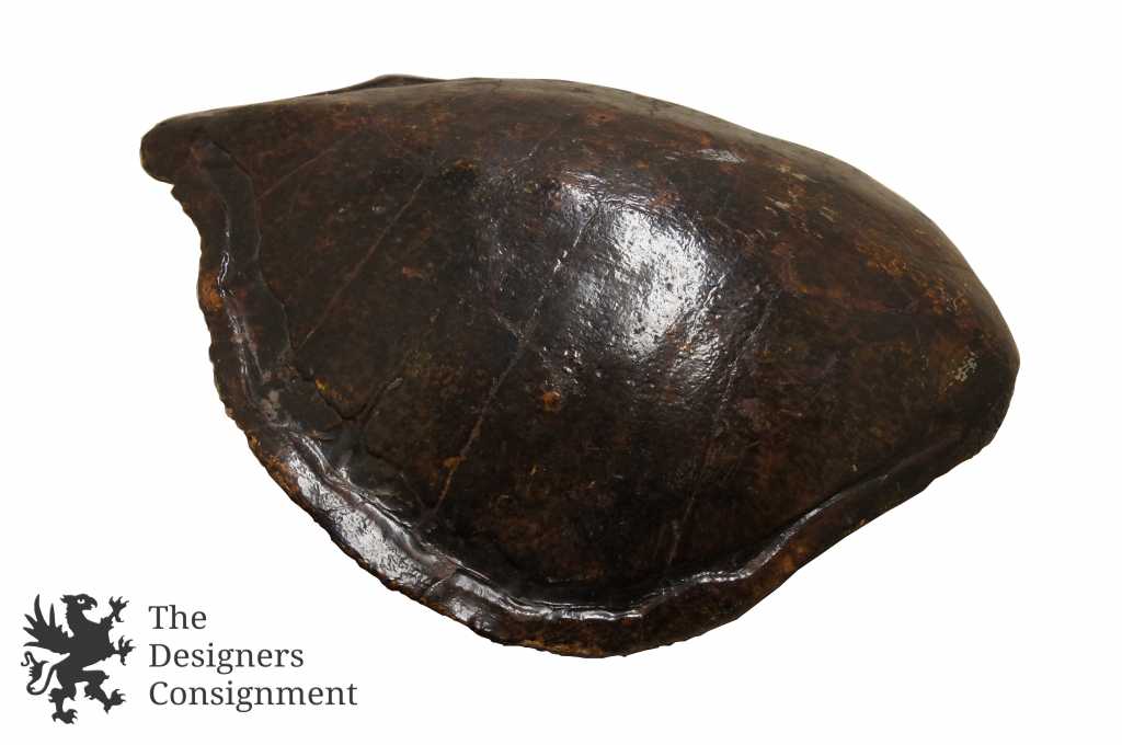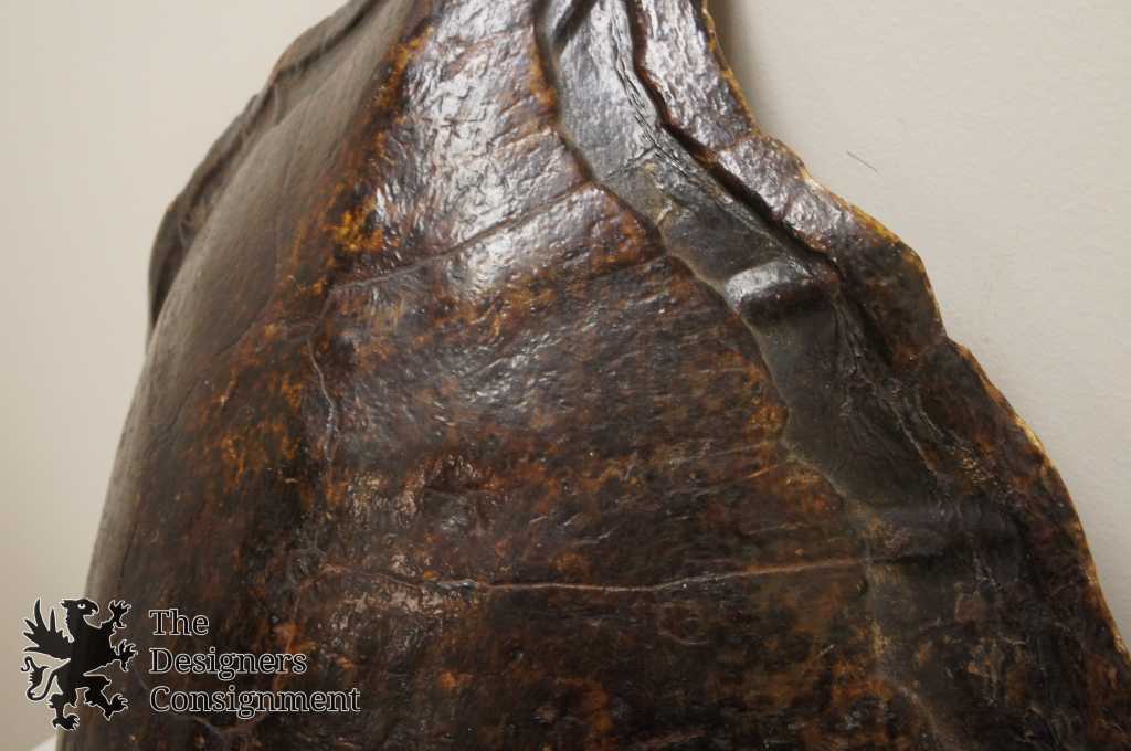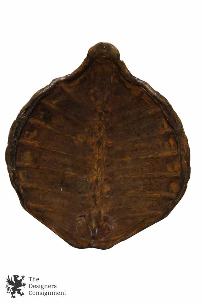 A large 26" turtle shell taxidermy. There is a small hole drilled in the top towards the tail for hanging on a wall.