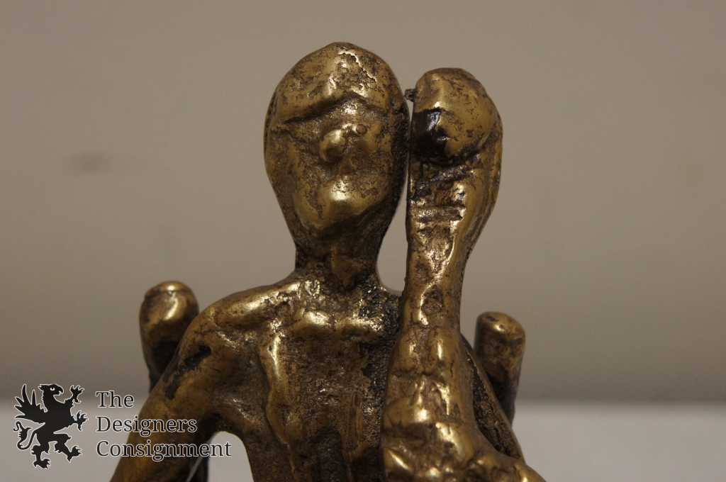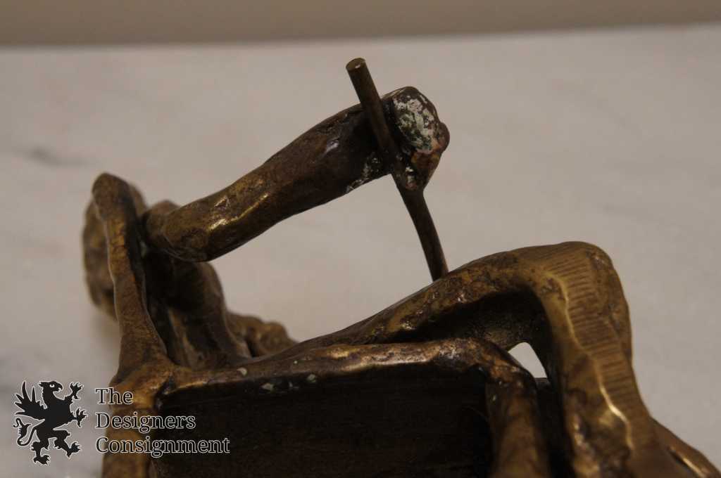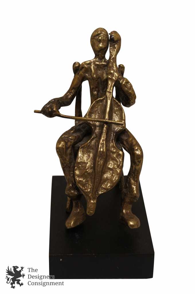 Brass Cellist figure featuring a seated individual over a black base. Marked Korea along the bottom.