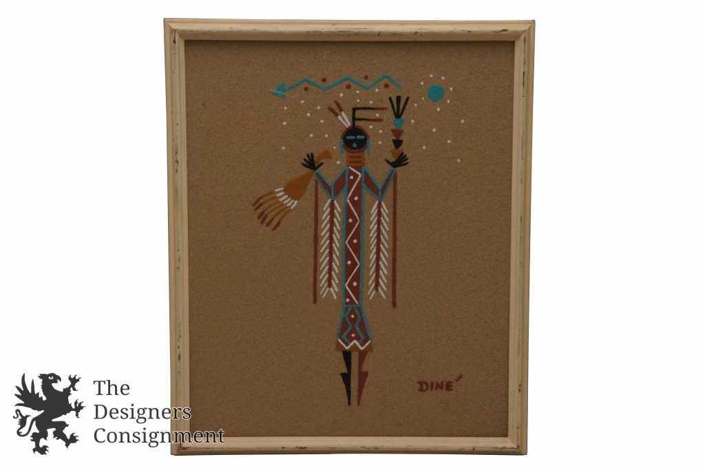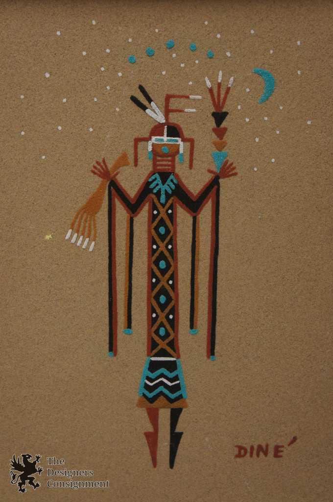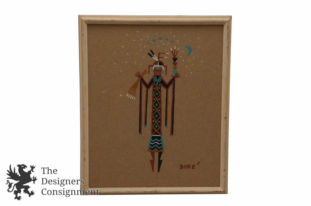 2 Navajo Dine' Southwest Sand Paintings Art Figures Pair Native American 17"