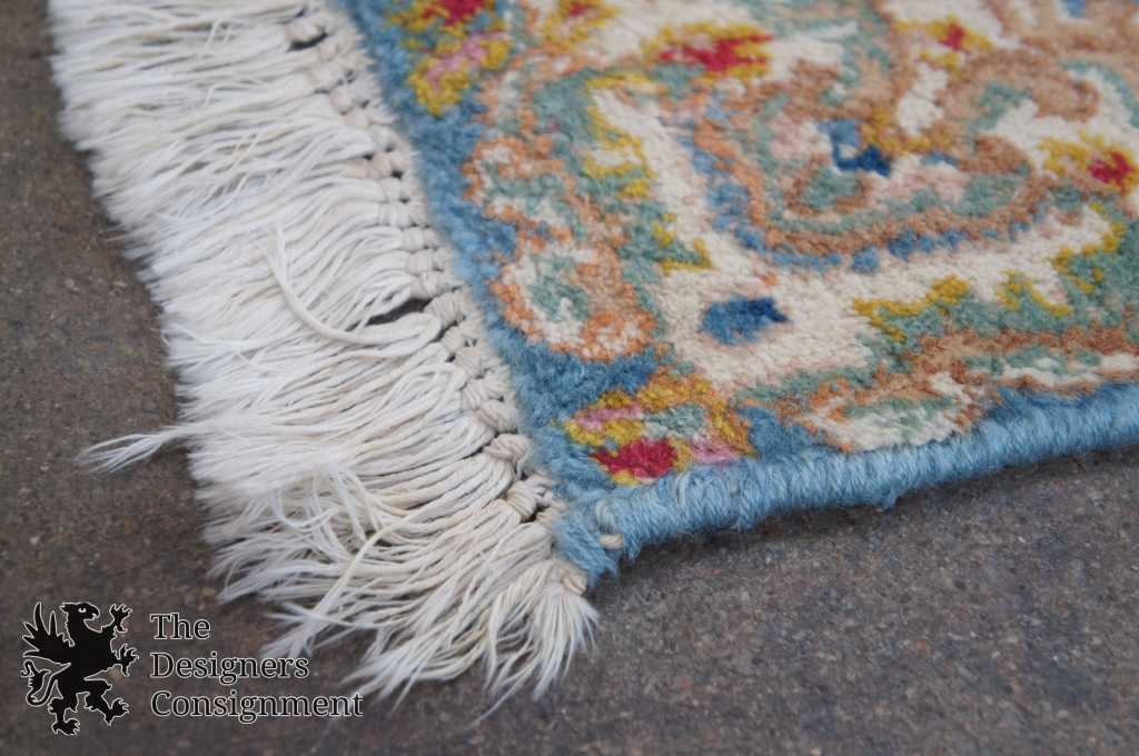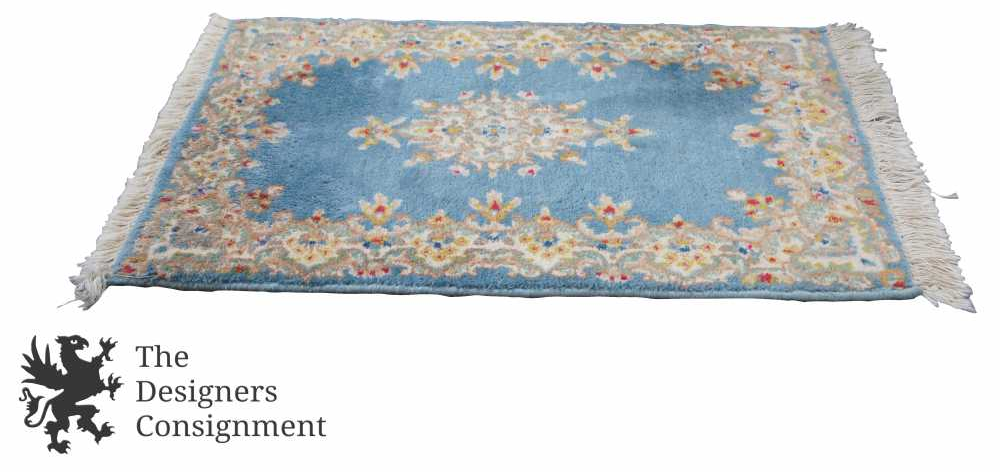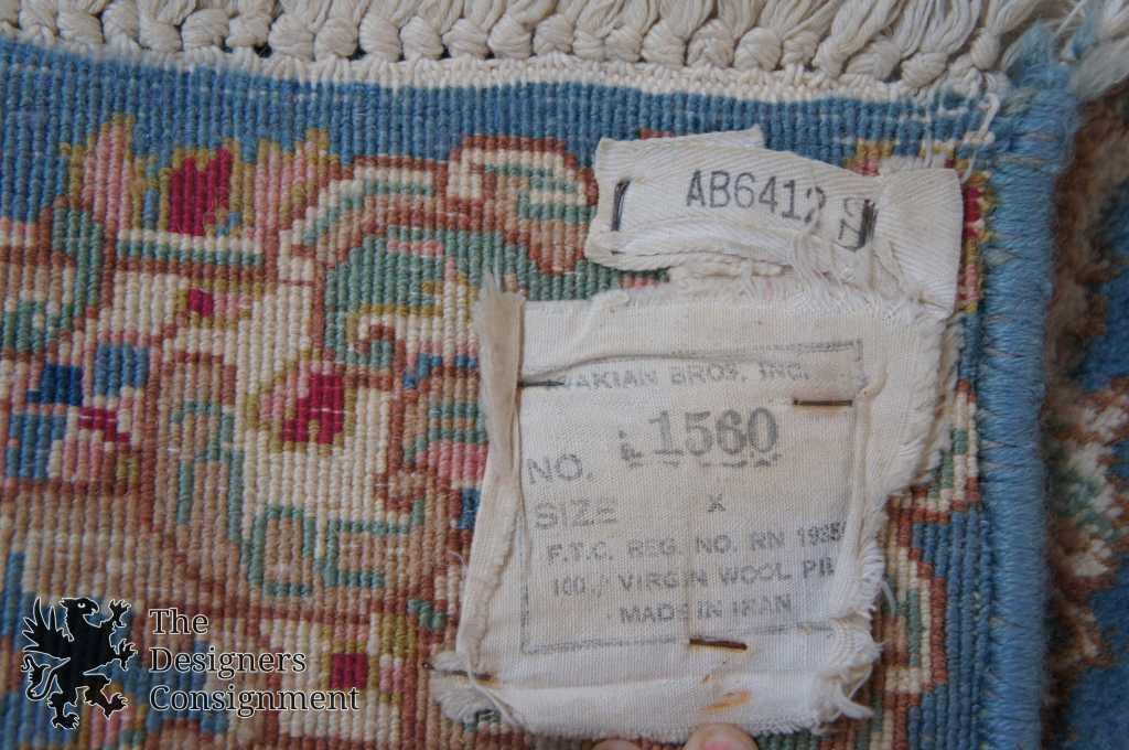 Floral Tabriz rug/mat from Iran. Labeled Hakian Bros. Inc. Blue & Gold floral design